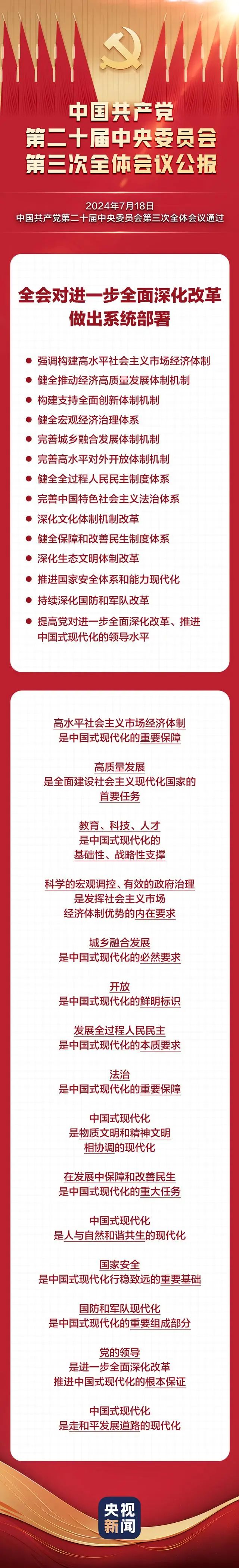 二十届三中全会公报要点速览