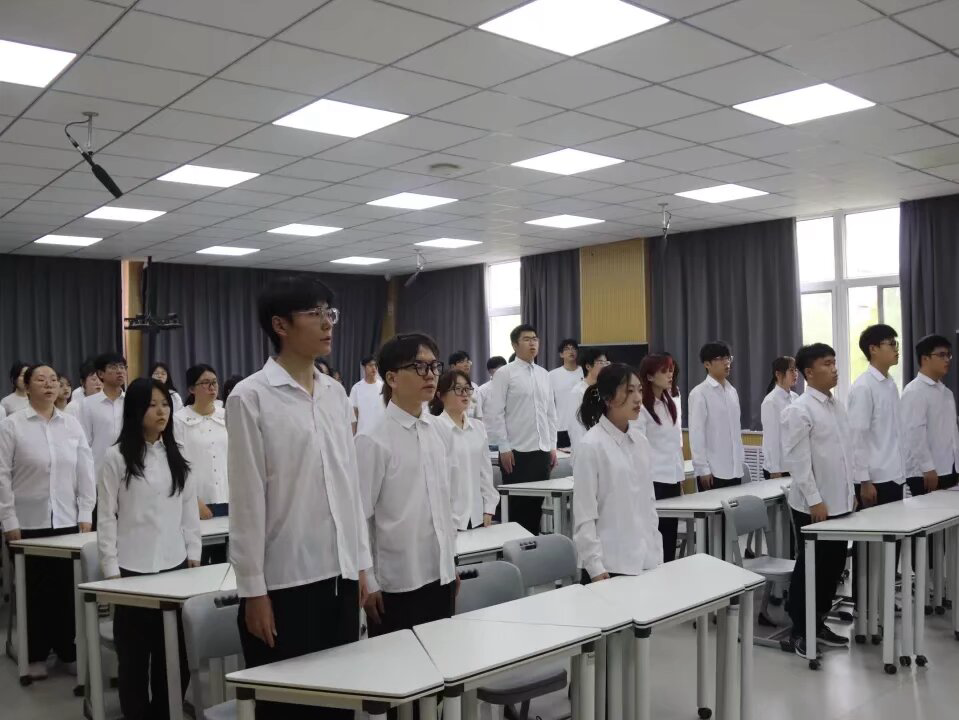 为增强新团员责任感与使命感,培育时代新人,5月8日,公司于6#A301教室举办2025年度新团员入团宣誓仪式。团委书记石晓晗,党员代表郭佳璐、万寿宏,优秀团员代表以及新发展团员参与此次新团员入团宣誓仪式。 随着激昂的国歌旋律响起,全体团员肃立,齐声高唱国歌,致敬祖国,入团仪式正式拉开序幕。 主持人刘昕媛宣读新团员名单,经过团组织的培养考察,共有19名先进青年被发展入团。石晓晗、郭佳璐、万寿宏为新团员颁发团员证与团徽徽章。 优秀团员代表韩明宇带领新团员面向团旗进行庄严地宣誓。新团员代表徐会锴围绕团员的思想、行动与责任三方面进行发言。他鼓励广大青年团员要知行合一,积极投身志愿服务,用青春力量传递温暖。团员代表李瑞瑄以共青团员所肩负的实现中华民族伟大复兴的历史使命对于共青团的使命的重要意义为出发点,将课堂所学与社会所需相结合,用一言一行诠释共青团员的品德追求。 石晓晗在学习工作中为新老团员提出四点建议,第一,要坚定理想信念,坚守原则底线,勿以恶小而为之;第二,努力学习,勤奋刻苦,保持对知识的好奇心,主动探索专业知识;第三,积极参加志愿服务、社会实践等活动,德智体美劳全方位成长;第四,发挥模范带头作用,树标杆做示范,在充分发挥自身优势的同时积极服务同学。 全体同学放声齐唱《中国共青团团歌》,新团员入团仪式在洪亮的歌声中落下帷幕。 本次入团宣誓仪式的成功举办,不仅有利于增强团员对团组织的归属感,强化集体意识,更有利于增强新发展团员的责任感和使命感,传承共青团的坚持与奋斗精神,从而激励新团员以誓言为指引,践行青春担当。 团员感悟 2023级5班张志飞:共青团是中国共产党领导的先进青年组织,是一个凝聚着无数远大理想抱负的青年力量的地方,它不仅能够指导我们建立正确的人生观和价值观,还能够引领我们的思想走向成熟。我深刻感受到,只有加入先进的青年组织,才能够更好地锤炼自己的品德和才能,只有成为共青团员,才能够更好地理解社会主义事业,为国家和社会发展贡献自己的力量。 (供稿:孙蕾 摄影:孙蕾 初审:裴一玮 复审:李月 终审:石晓晗 尤姗姗)