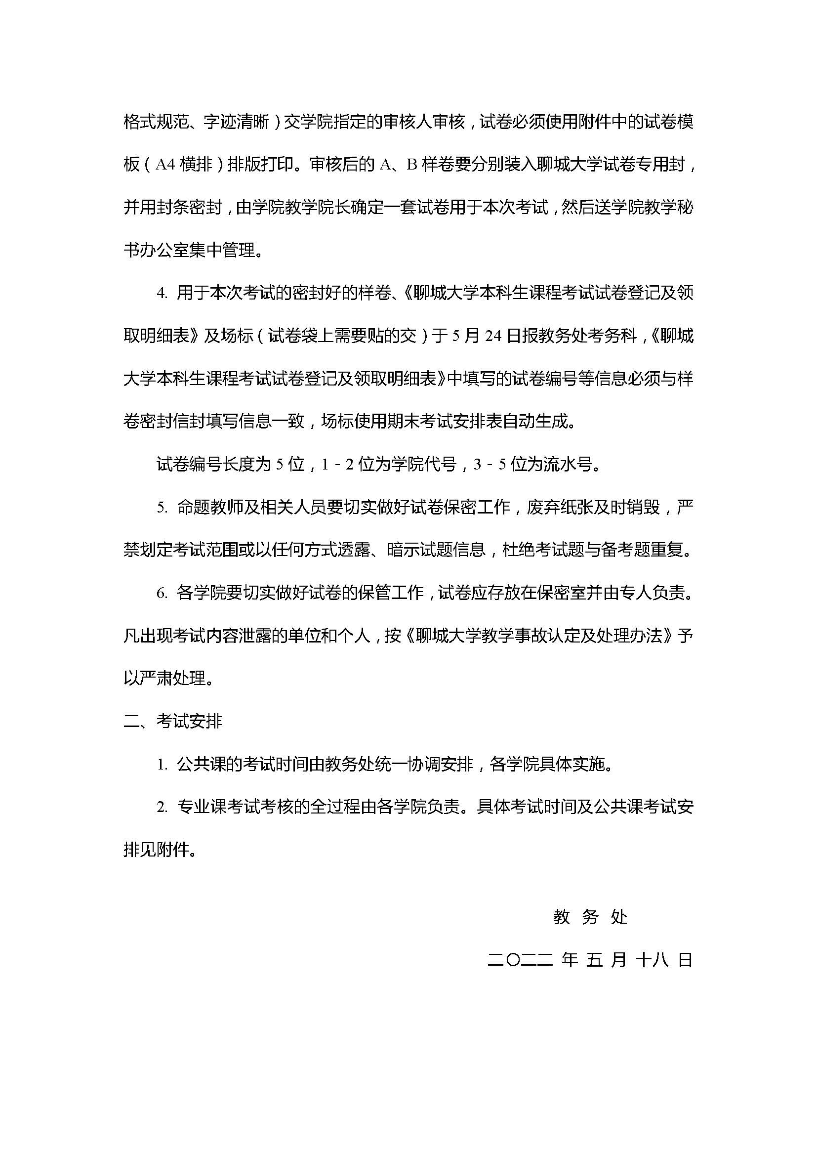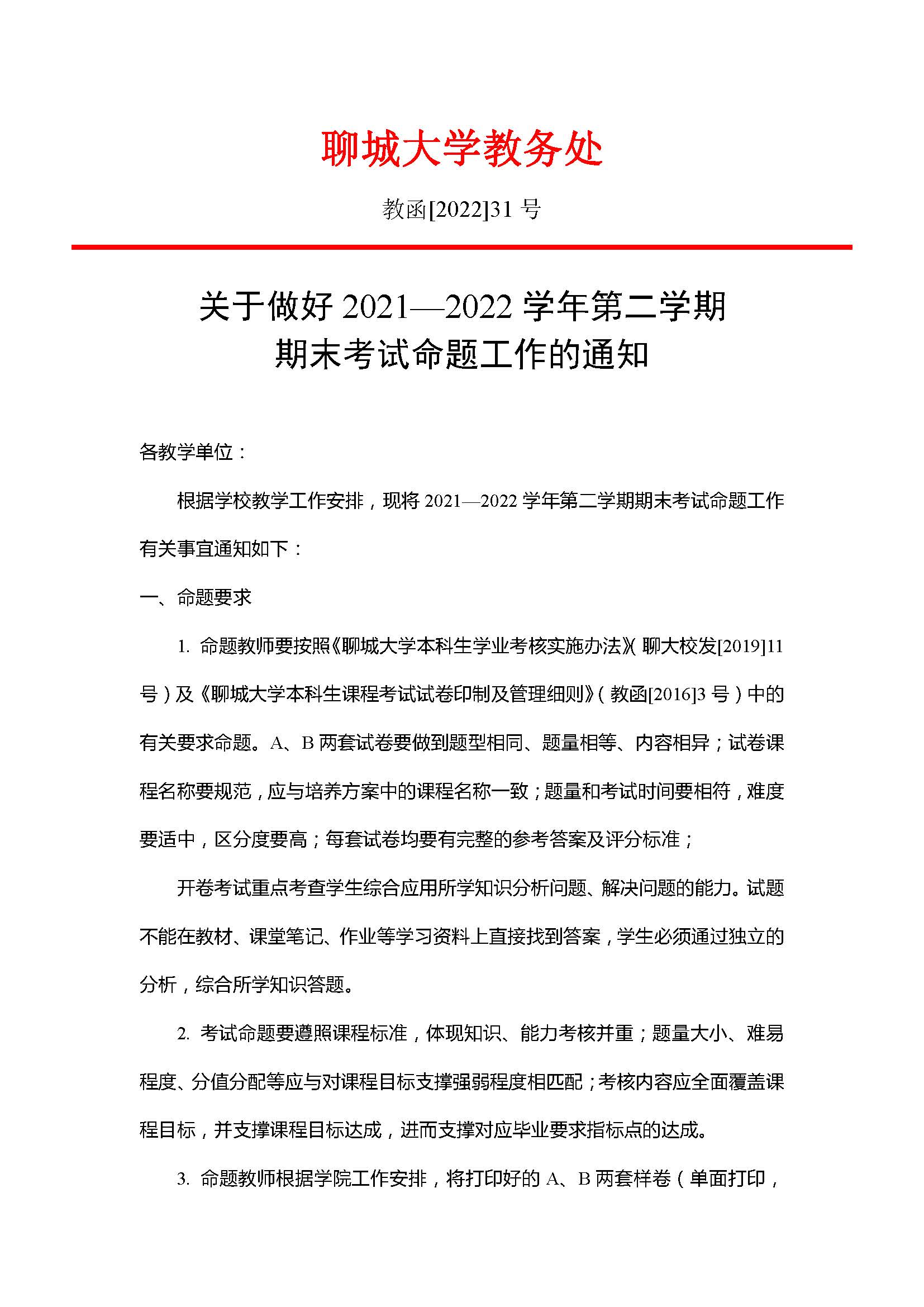 关于做好2021-2022学年第二学期期末考试命题工作的通知