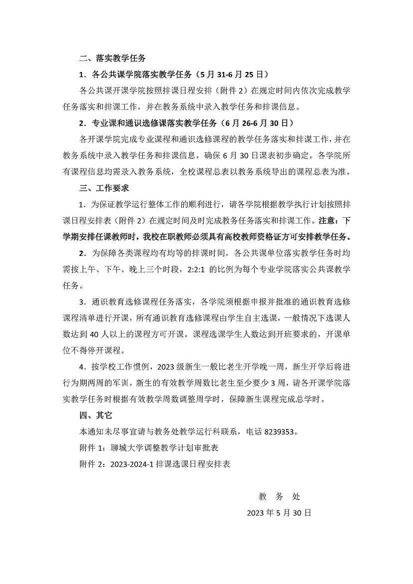 相关附件: 附件1 mk体育调整教学计划审批表.doc 附件2 2023-2024-1排课选课日程安排表.doc 来源:mk体育教务处
