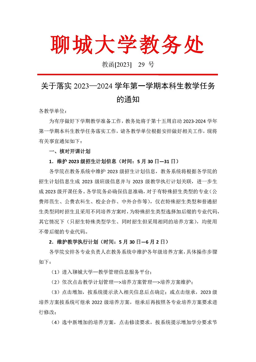 关于落实2023—2024学年第一学期本科生教学任务的通知