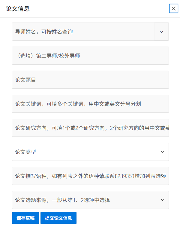 学士学位申请信息填报系统操作说明 1.系统登录:推荐使用微信或企业微信登录填报系统 本科生学士学位申请信息填报系统已与数字聊大系统对接,登录数字聊大后,在浏览器中打开网址http://jwcweb.lcu.edu.cn/lzjw17/wslzjw/r/cas/home即可登录填报系统,无需输入账号密码,已经绑定企业微信的用户可以把上述网址复制到微信或企业微信中,直接在微信或企业微信点击网址即可登录填报系统。 其他方式进入系统的如未登录数字聊大将跳转到数字聊大登录页面,登录数字聊大后点击确认登录进入填报系统,如果没有自动跳转再次输入系统网址即可。 3.请严格按照系统提示信息填报,填报无误后提交论文信息。 4.填报中如有问题可由班委发2021级班委教务QQ群,或报本公司教务办公室。 5.数字聊大登录问题请点击数字聊大登录页面 在线技术支持或联系网络中心。
