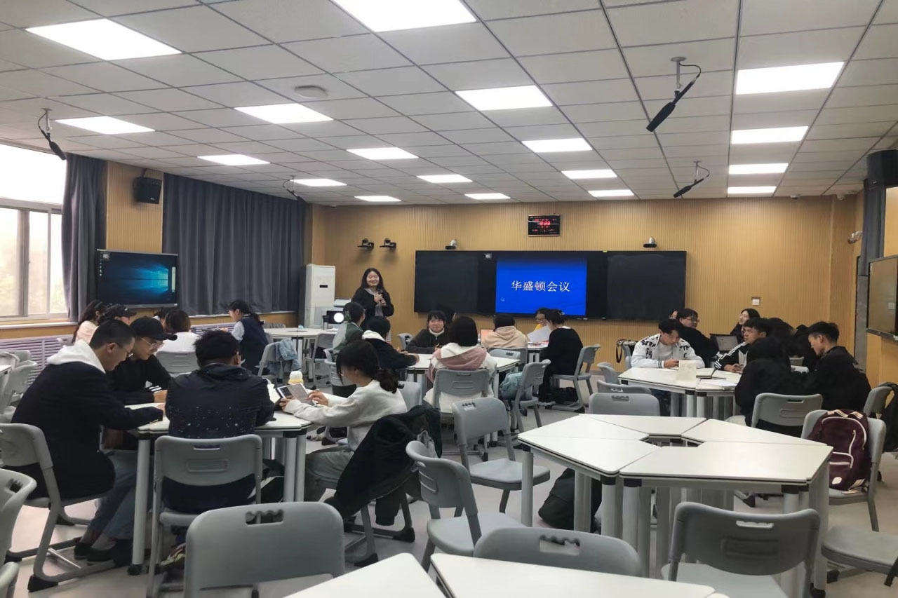 为拓宽员工视野,增强员工课堂参与感,提高其学习兴趣和专业素养,10月15日,公司2020级外国语言与外国历史专业同学在A301智慧教室进行了一次别开生面的历史学课堂学习。本次课堂活动主要以模拟重现华盛顿会议为主要内容,课程由《世界现代史》课程主讲教师田肖红老师主持,2020级“双外”6班全体同学参加。 华盛顿会议是一战结束后,美、英、日等帝国主义国家为重新瓜分远东和太平洋地区的殖民地和势力范围,由美国建议召开的国际会议。本次会议由美、英、法、意、日、比、荷、葡和中国代表团参加。课堂进行前,同学们积极查找历史资料,为模拟课堂的进行做好了充分准备,并根据会议实况,将全班同学划分成9个小组,代表九国代表团。 课程开始,“美国代表团”主持本次本次模拟会议,本次会议主要由裁减海军军备问题、远东问题以及英日同盟三部分构成。接着,各国代表围绕着三个不同的议题展开了激烈的讨论。其中,作为美方代表的同学,很好地演绎出美国强硬态度。不论是面对野心勃勃的日本代表团,还是妄想谋取欧洲更高地位的法国代表团,将美国这个未来第一世界大国的气势体现得淋漓尽致;作为中国代表的同学们,在中国问题上维护主权的坚决态度,也折射出巴黎和会之后的民族觉醒之事实;英国代表团虽在海军以及英日同盟问题依然表示强硬,但通过同学们的出色表演,也体现出“日不落帝国”地位的衰弱和处理国际问题的力不从心;在座的与会小国也不甘示弱,纷纷表达对各项议题的看法。各国代表们不断发挥自己的沟通、协作能力,在场上谨言慎行、步步为营。紧接着,各国代表就会议上达成的共识,进行协约的签订。最后,田肖红老师进行了课堂总结,带领同学们再一次梳理华盛顿会议的背景、内容、影响以及评价,并对同学们充实的准备和出色的表现进行点评。 本次历史模拟活动课的顺利进行,不仅有利于增强同学们的课堂参与度,加深同学们对华盛顿会议的认识;还有利于提高同学们的专业意识,促进历史学专业素养的形成,形成良好的国际视野。 mk体育高度重视信息化课堂建设,积极开拓新的课堂形式。今年,公司在公司支持下斥资投建了A301智慧教室。本次《世界现代史》课程历史模拟课堂的成功举办,充分证明智慧教室在提供新的课堂学习形式和提高同学们学习兴趣方面有着突出的优势,在公司今后的课程和课堂改革方面也将会起到重要作用。