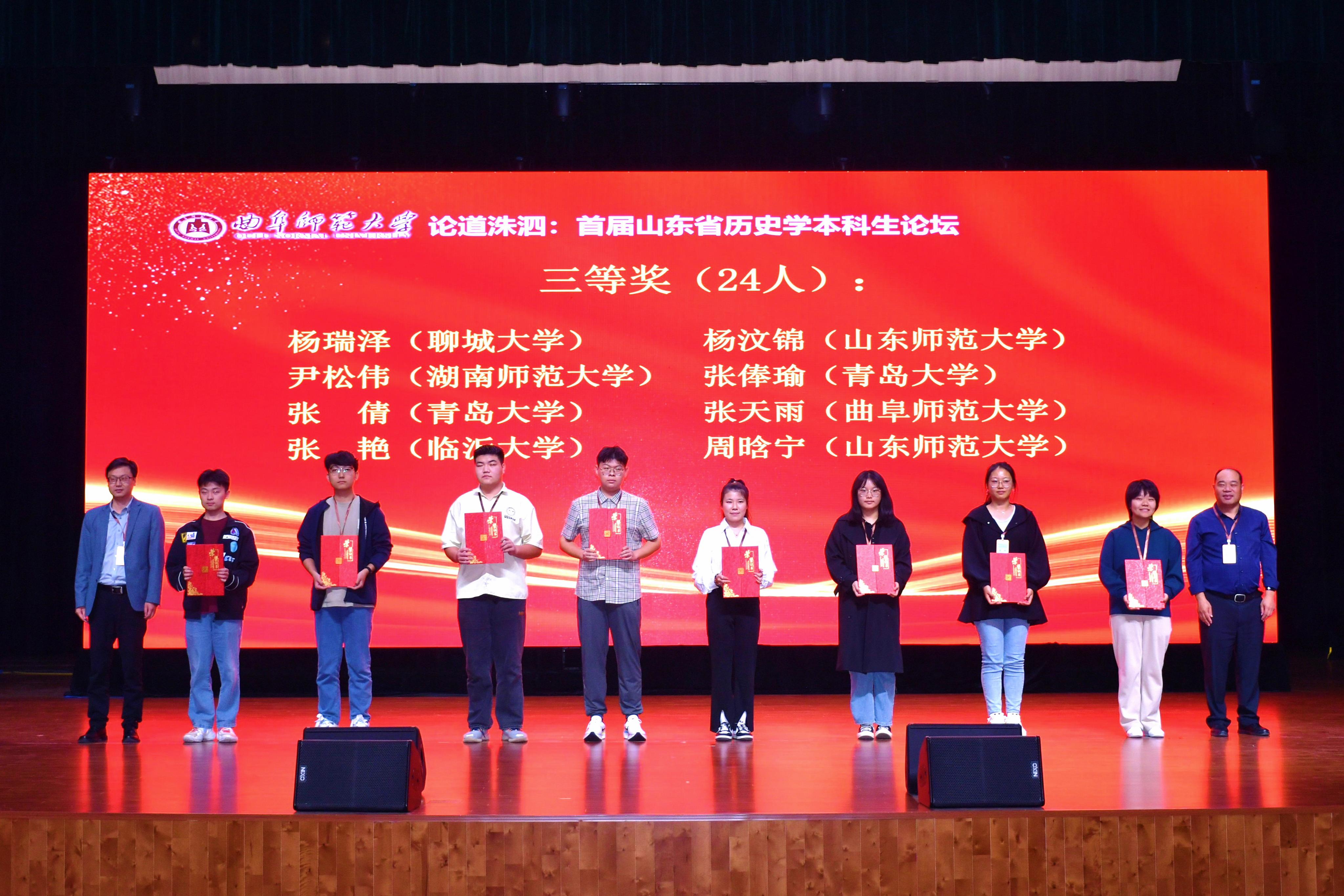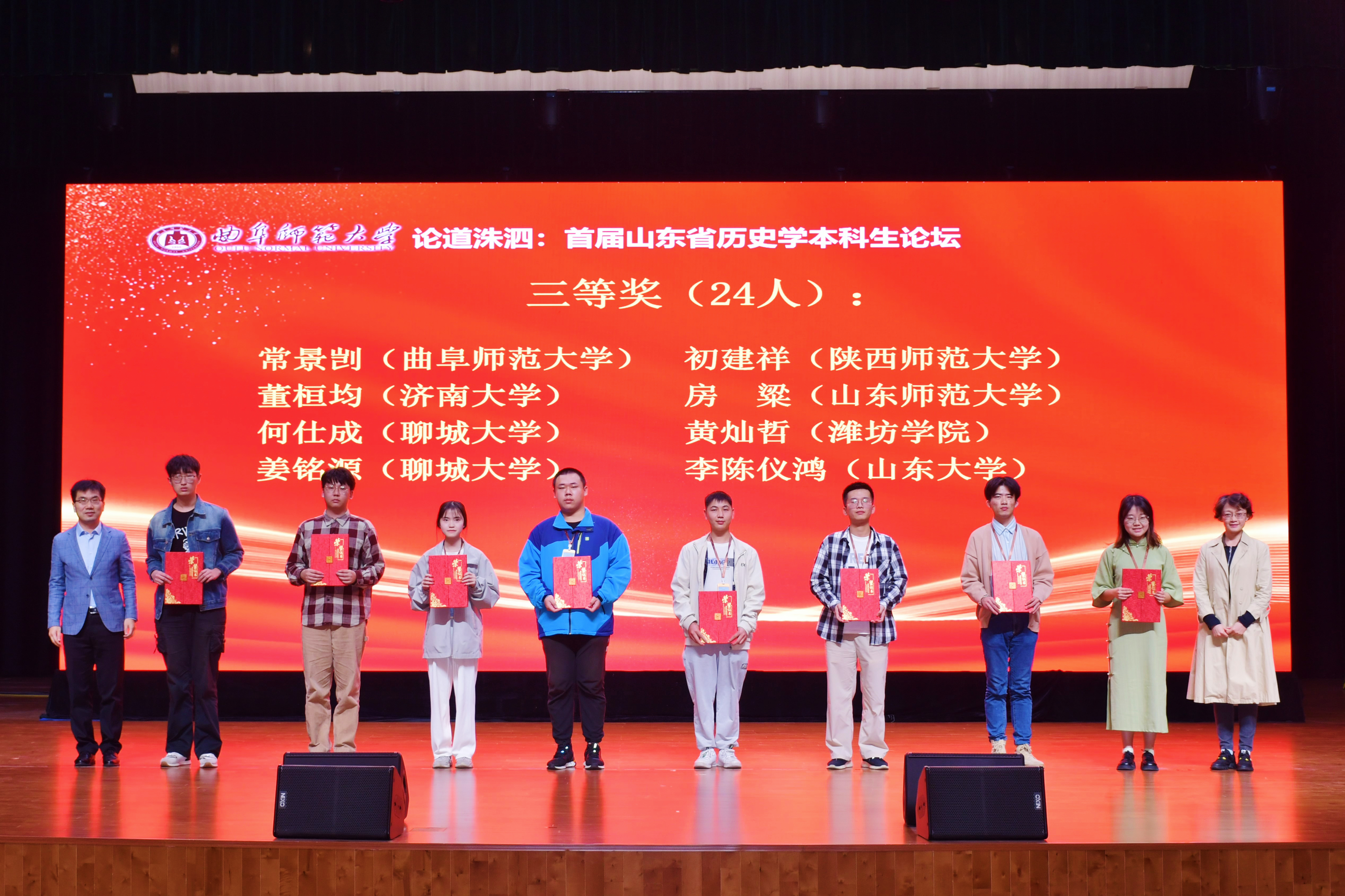 10月13日至14日,“论道洙泗:首届山东省历史学本科生论坛”于曲阜师范大学顺利召开,公司经理赵少峰出席本次论坛并担任分半场主持人。公司共有四篇论文入选此次论坛并喜获佳绩。 本次论坛共收投稿247篇,经过严格的筛选,来自省内外21所高校共48名本科生的论文入围本次论坛。公司四名本科生分别入围中国古代史组、中国近现代史组、世界史组参加论坛,在省内外高校入围人数中名列前茅。 14日下午,四组分组讨论同时进行。在分组讨论中,赵少峰教授担任第三组上半场主持人,对本场同学提交的论文及所作汇报给予充分肯定并提出宝贵意见。 杨瑞泽同学、姜铭源同学、何仕成同学、杨雨林同学分别在所属小组进行汇报并得到了主持人及评论人的一致认可。 14日晚闭幕式上,各分组代表依次向论坛作了简要汇报,并对评选出的优秀论文和优秀组织单位进行颁奖。经过专家评审,公司荣获“优秀组织单位奖”,杨雨林同学获得“优秀论文二等奖”,杨瑞泽同学、姜铭源同学、何仕成同学获得“优秀论文三等奖”。 近年来,公司通过积极建设本科生导师制、邀请校外专家举办学术讲座和读书会等多种举措支持本科生进行学术创新,突显公司特色。组织本科生参与学术论坛是公司培养员工科研能力、提升学科影响力的重要举措。 下一步,公司将继续加大团队建设的投入力度,严格按照国家标准,牢记立德树人职责使命,务实创新,大力推进历史学专业内涵建设,进一步优化历史学专业结构,突出特色,强化优势,着力实现“三全育人”,全力培育史学人才,高起点、高标准做好历史学科的队伍建设和人才培养。 (审核 尤姗姗 官士刚)