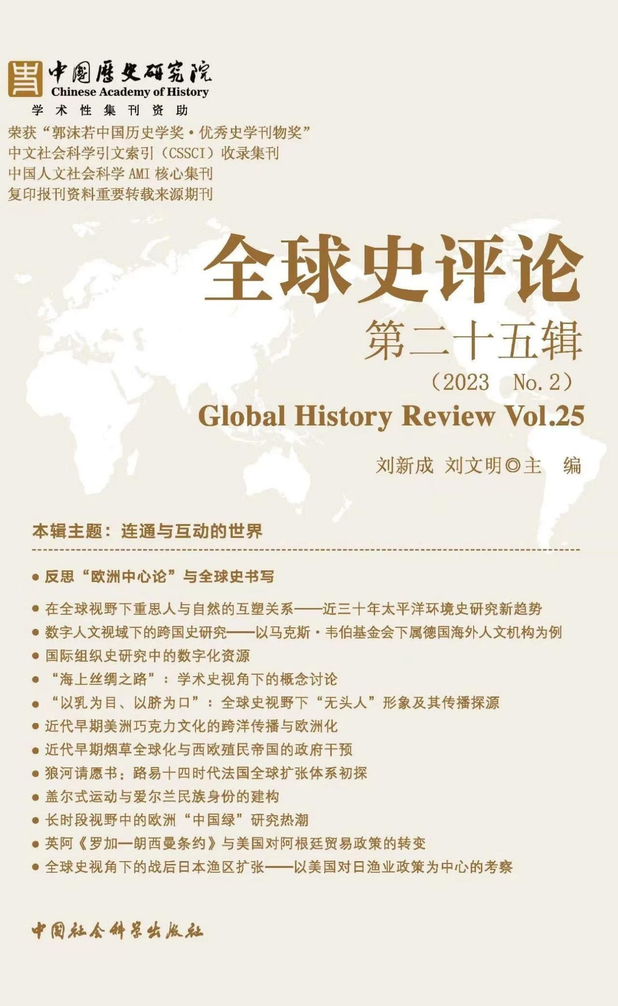 近日,CSSCI《全球史评论》公布第25辑目录,公司李增洪教授发表《析孟德斯鸠的欧洲优越论》一文。 据悉,《全球史评论》创刊于2008年,由首都师范大学全球史研究中心主办,致力于介绍最新全球史理论,是展示国内外全球史学者最新研究成果的重要平台,为全球史研究领域中具有重要影响力的学术刊物。此次文章的发表是mk体育以高标准、高质量推进学术科研工作的重要成果;下一步,公司将继续加大培育力度,多措并举,提升公司师生学术能力与科研水平,为推动史学研究作出新贡献。