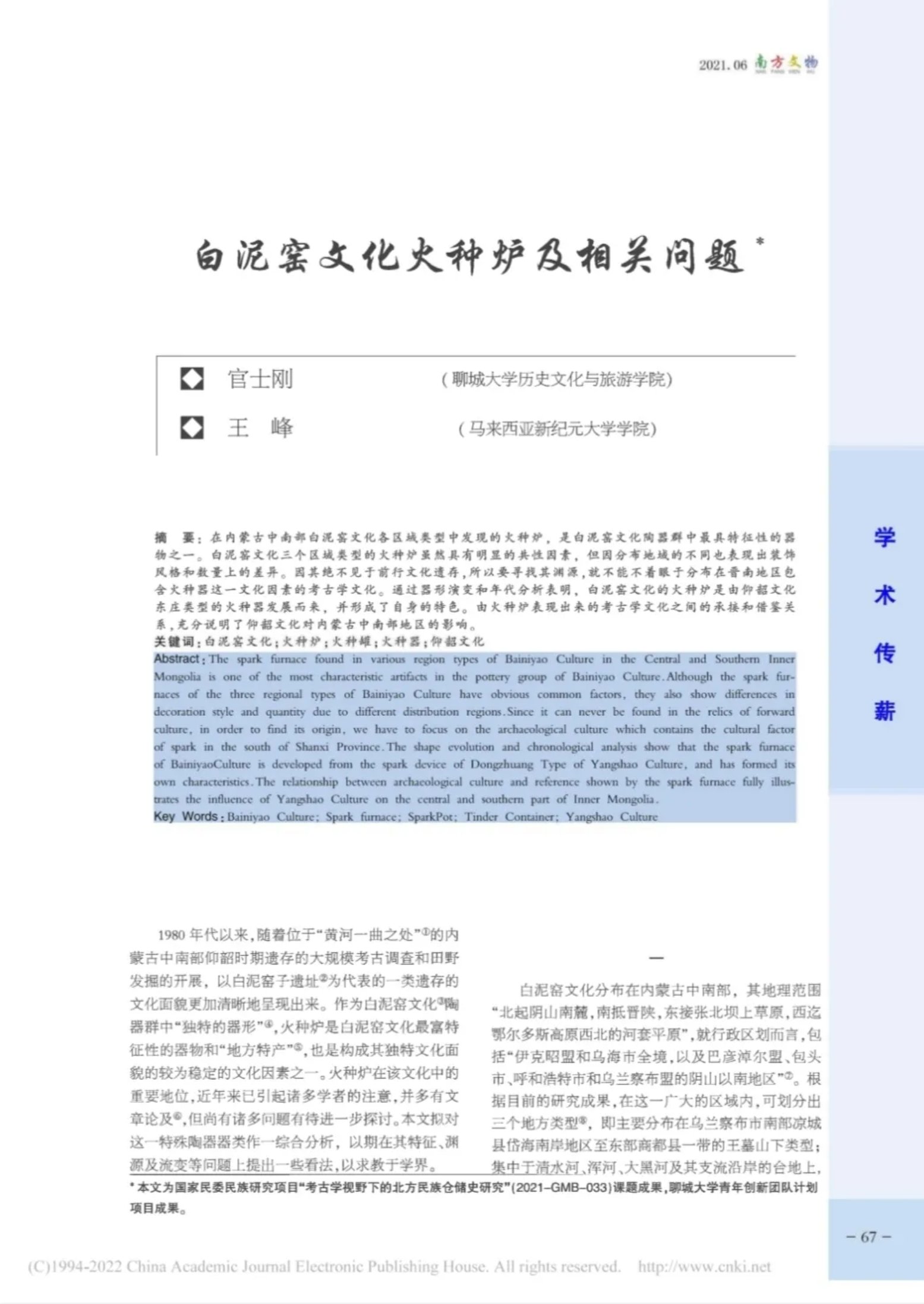 学术简报丨官士刚、王峰:白泥窑文化火种炉及相关问题