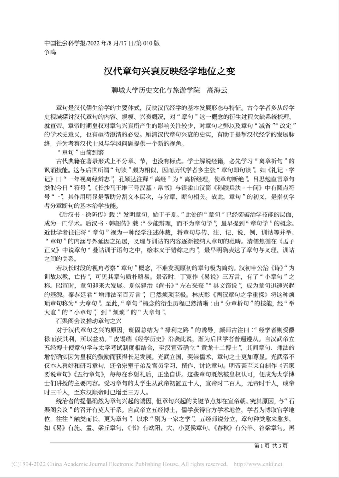 学术简报 | 高海云:汉代章句兴衰反映经学地位之变