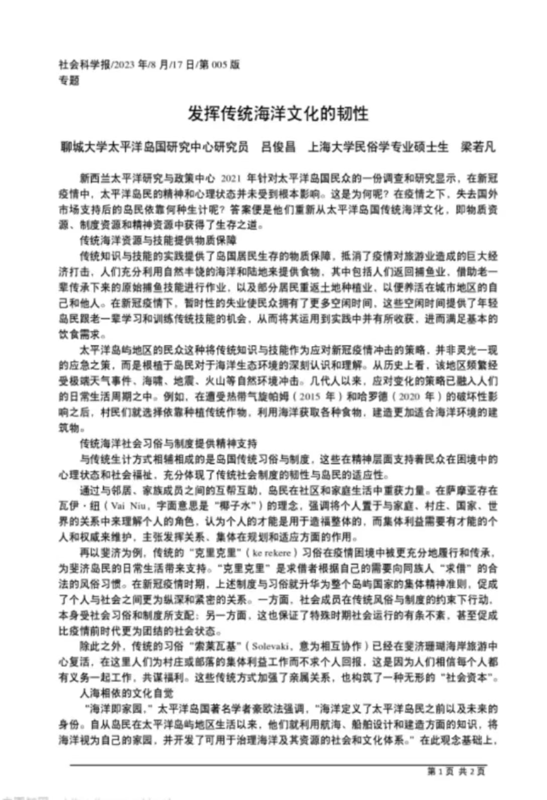学术简报丨吕俊昌 梁若凡:发挥传统海洋文化的韧性