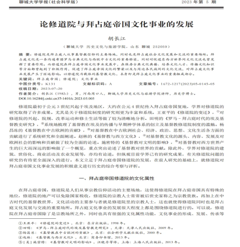学术简报丨胡长江:论修道院与拜占庭帝国文化事业的发展