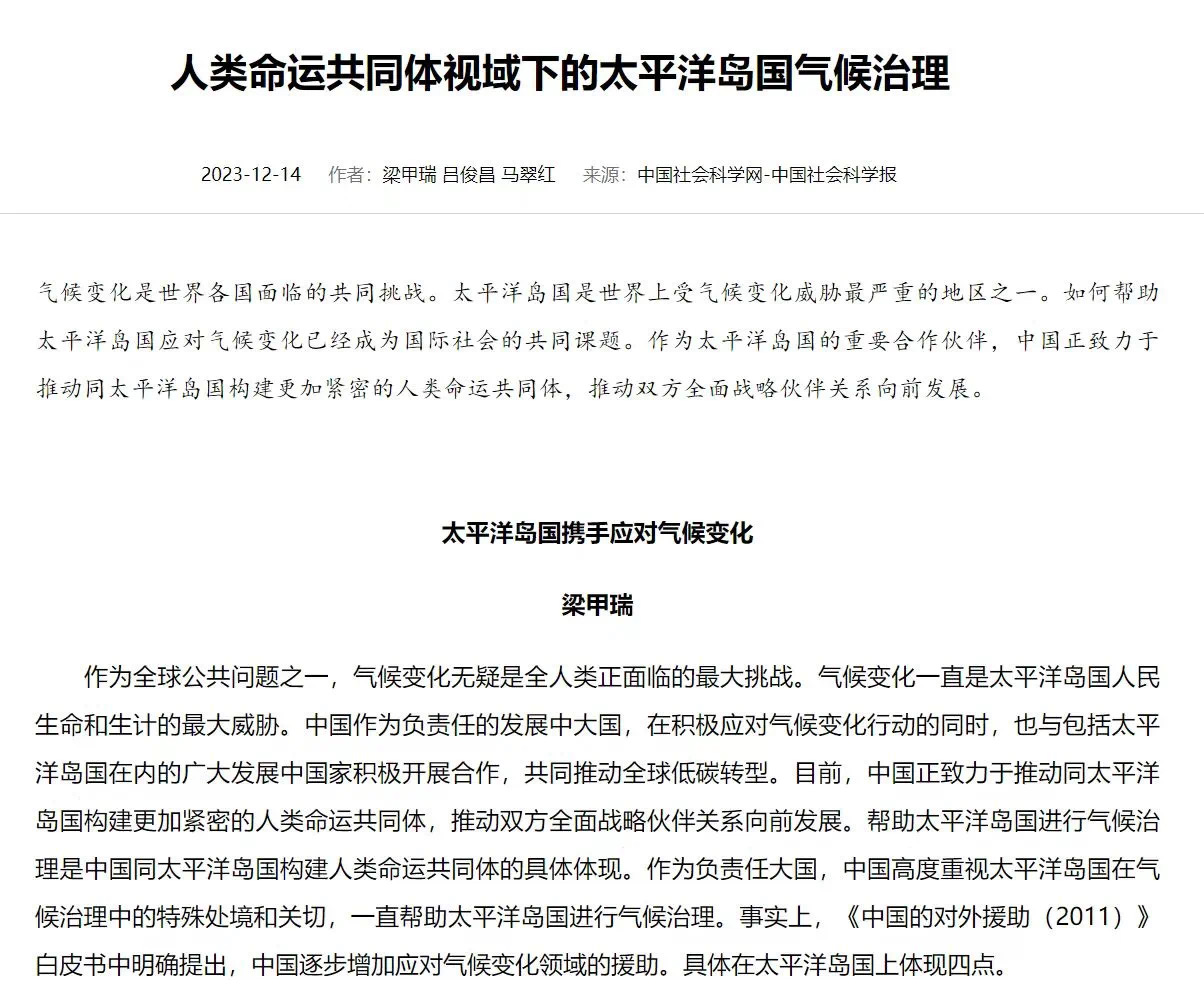 学术简报丨梁甲瑞:太平洋岛国携手应对气候变化
