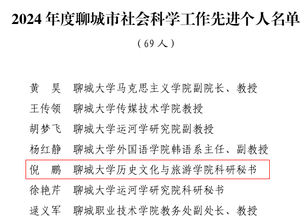 公司教师入选“2024年度聊城市优秀社科理论专家”“2024年度聊城市社会科学工作先进个人”名单