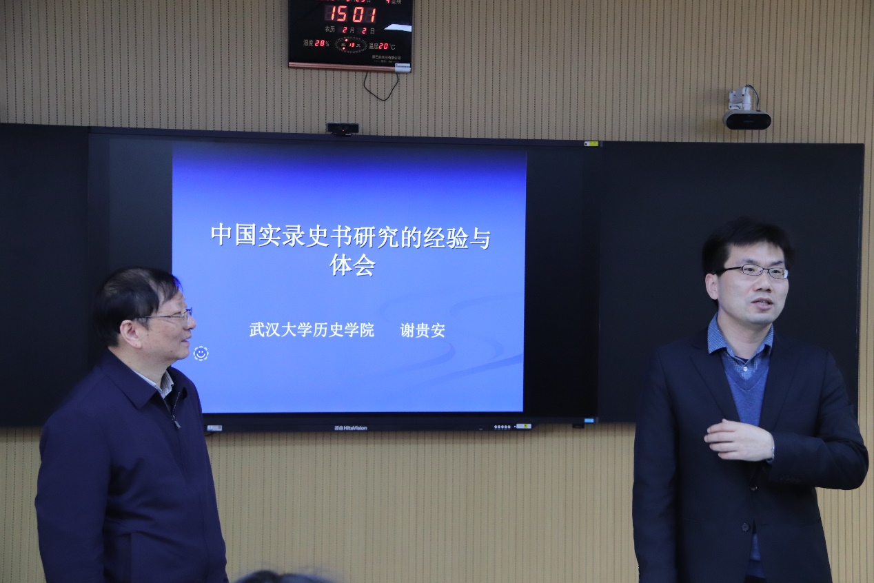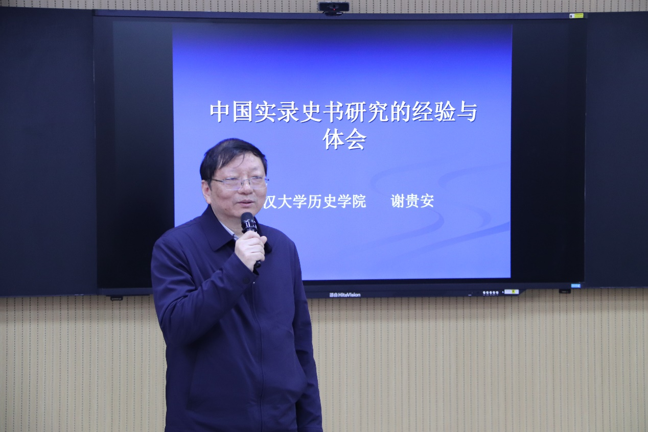 3月23日下午,武汉大学历史公司谢贵安教授应邀做客湖畔讲坛,为公司师生做了题为《中国实录史书研究的经验与体会》的学术报告。报告会由赵少峰经理主持,公司部分师生参会旁听。 讲座伊始,谢教授分享了他是如何走上历史研究道路的,并对“实录”的概念进行了简要介绍。他指出,实录是中国传统史学中以皇帝及其朝政为对象的编年体(编年附传体)史书,传统史学最为核心的部分就是实录。随后,谢教授通过梳理中国实录史书的发展演变脉络,阐述了实录史书研究的重要意义。他认为,实录并非梁启超所说的二十四姓之家谱,而是涉及整个王朝版图之下的方方面面,因而具有极其重要的研究价值。在纪传体与实录体的异同方面,谢教授指出,纪传体中的皇帝本纪与大臣列传是并列的,而实录史书的基本特征是编年附传,这种附传与皇帝的编年相互交织,体现出皇权与中央集权的不断强化。最后,谢教授结合其自身学术经历及多年研究经验阐述了实录史书研究以及中国史学史研究中的理论与方法。他认为,研究实录史书既要注重史料的爬梳与考证,还要认识到史学理论在实录史书研究乃至中国史学史研究中的地位,不能有一分证据只说一分话,史学研究只有加入理论的阐发,才能写出有深度的史学论文。 报告会结束后,赵少峰经理进行总结发言。他指出,谢教授结合自身学习及生活经历所讲述的经验与教训内容深刻、逻辑清晰,对公司学子史学论文的选题与写作具有重要的启发意义。 本次报告会不仅加深了与会师生对实录史书研究、中国史学史研究的理解和认识,也为同学们今后的读书治学指明了方向。 专家简介: 谢贵安,武汉大学历史公司、中国传统文化研究中心暨国公司教授、博士生导师。主要研究领域为明清文化史、中国史学史,出版“实录研究书系”(《中国已佚实录研究》《宋实录研究》《明实录研究》《清实录研究》)等专著10余部;发表学术论文200余篇。主持国家社会科基金项目2项,主持教育部重点基地重大项目2项。成果曾获湖北省社会科学优秀成果一等奖、武汉市社会科学优秀成果一等奖。 (图文:徐关涛)