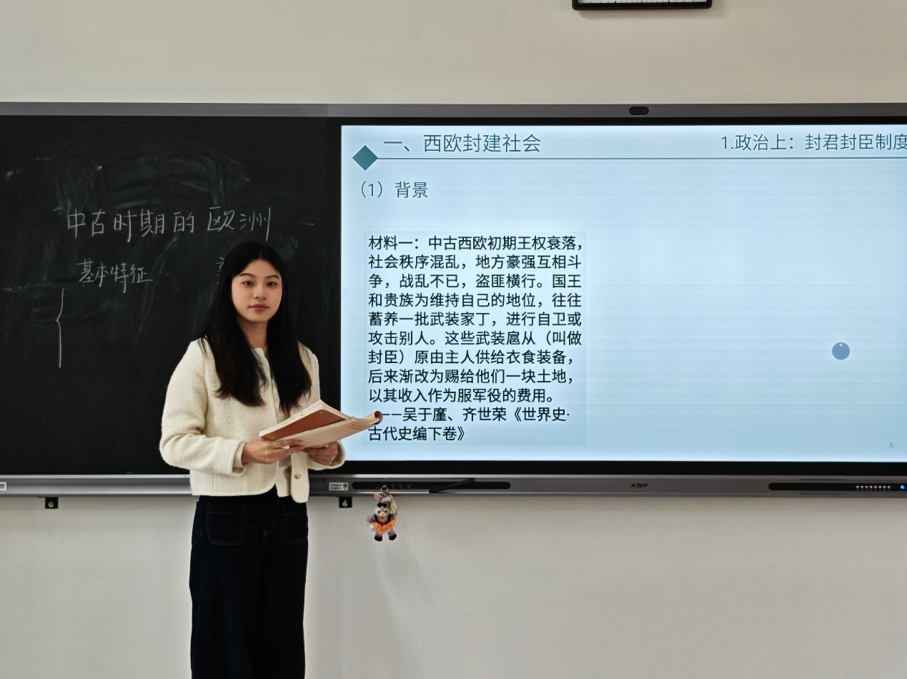 为切实提升研究生教学能力、锤炼教学本领,mk体育2023级学科教学(历史)专业研究生赴山东各地市开展为期半年的教育实习活动。公司学子在实习期间,通过旁听授课、教学研讨等方式,亲身体验教学环境,深切把握教学实际,积极总结教学经验,为培养高水平教学人才打下了坚实的基础。 实习教师 韩彩云 山东聊城第三中学 我是韩彩云,mkmksport学科教学(历史)专业研二的一名员工,目前在山东聊城第三中学进行为期半年的教育实习。 教育实习期间,我主要参与了高一年级历史学科的教学工作,实习内容主要包括集体备课、听课观摩和课堂教学三个方面。 在集体备课中,我系统掌握了从研读课程标准到教学反思的完整流程。教师们围绕教学重难点展开研讨,无私分享教学经验和创新方法。这段经历让我深刻认识到,历史教学既要保持学术严谨性,又要富有教学创造性,同时也更加坚定了我不断提升专业素养和教学能力的决心。 在听课过程中,我重点学习了高一下学期世界史课程,系统观察了多位教师的教学实践。通过这一过程,我既弥补了世界史专业知识上的不足,又深入领会了不同教师的教学风格与方法特色,为今后的教学工作积累了宝贵经验。 在课堂教学中,我将时间管理与课堂互动视为教学的“双翼”。课前,我科学设计教学环节的时间配比,确保课堂节奏张弛有度;课中,通过创设多样化的互动情境,充分调动员工参与积极性;课后则及时进行教学反思,并在导师指导下持续优化教学设计。通过持续的教学实践与改进,我的教学能力得到显著提升,实现了专业成长的良性发展。 这段充实的实习经历,使我对历史教师的职业内涵有了更深刻的体悟,对教学工作有了更全面的把握。衷心感谢山东聊城第三中学提供的实践平台,以及指导教师的专业引领和无私帮助。未来,我将持续精进专业能力,提升教学水平,为成长为一名优秀的历史教师而不懈努力。