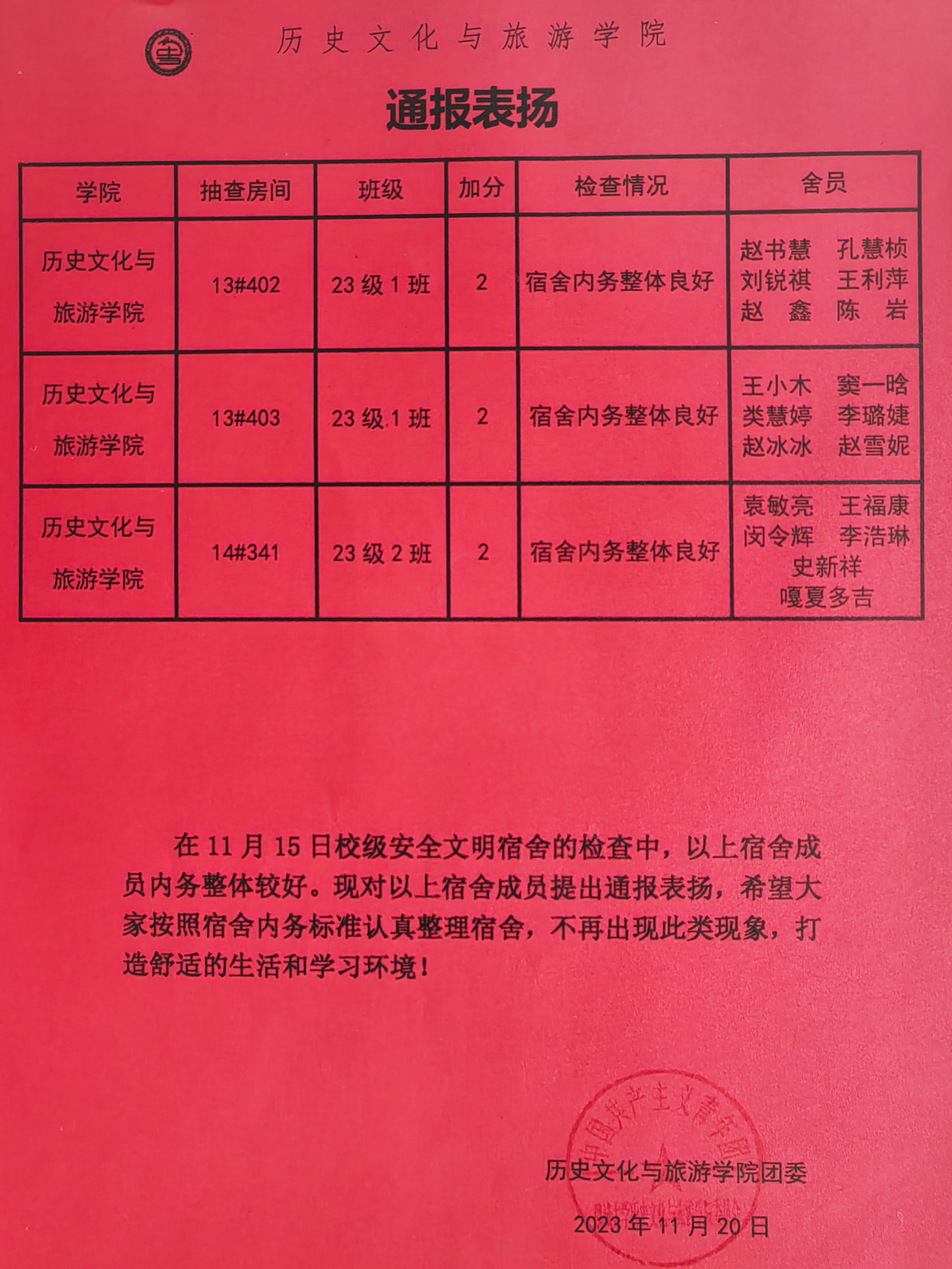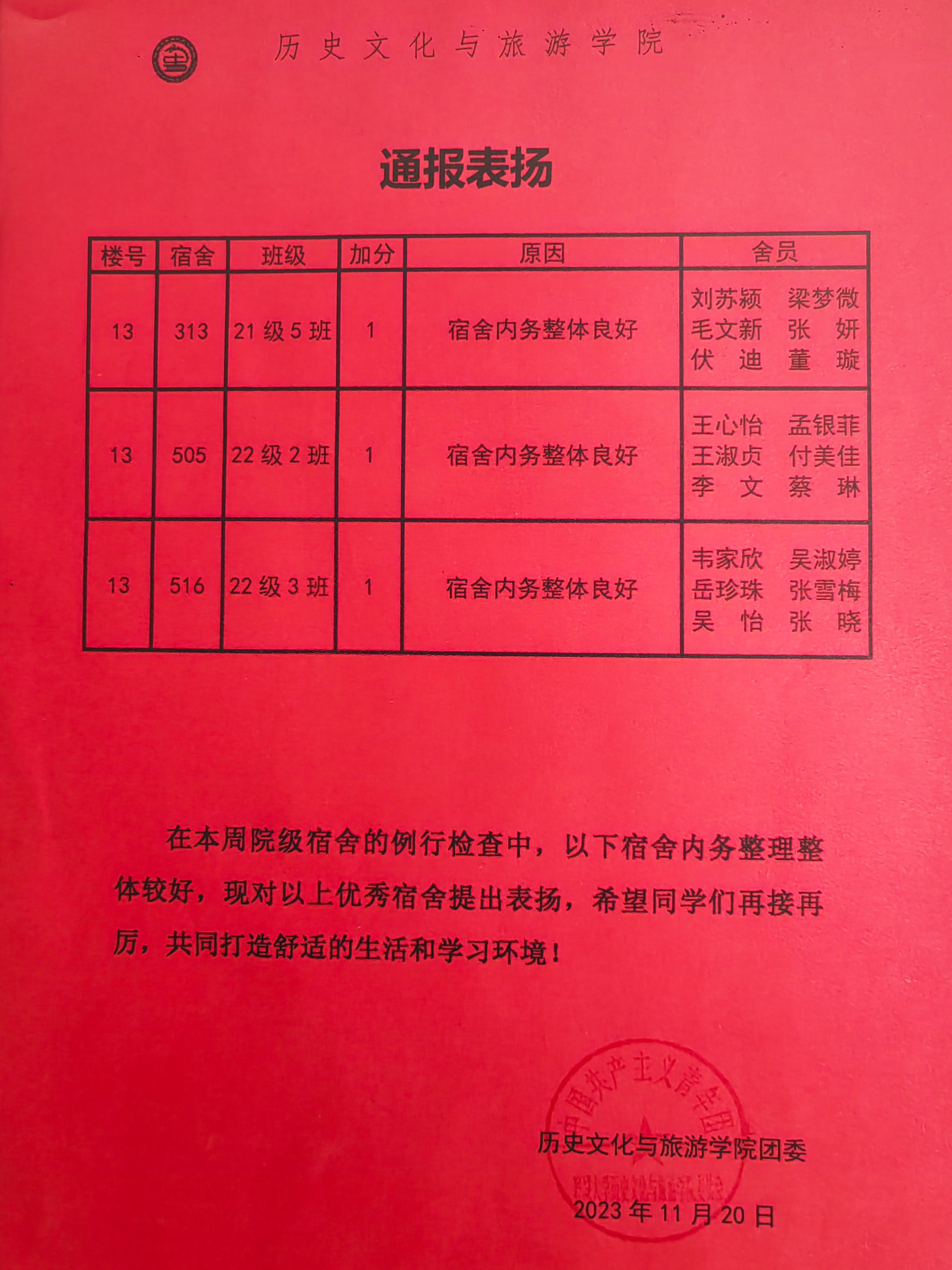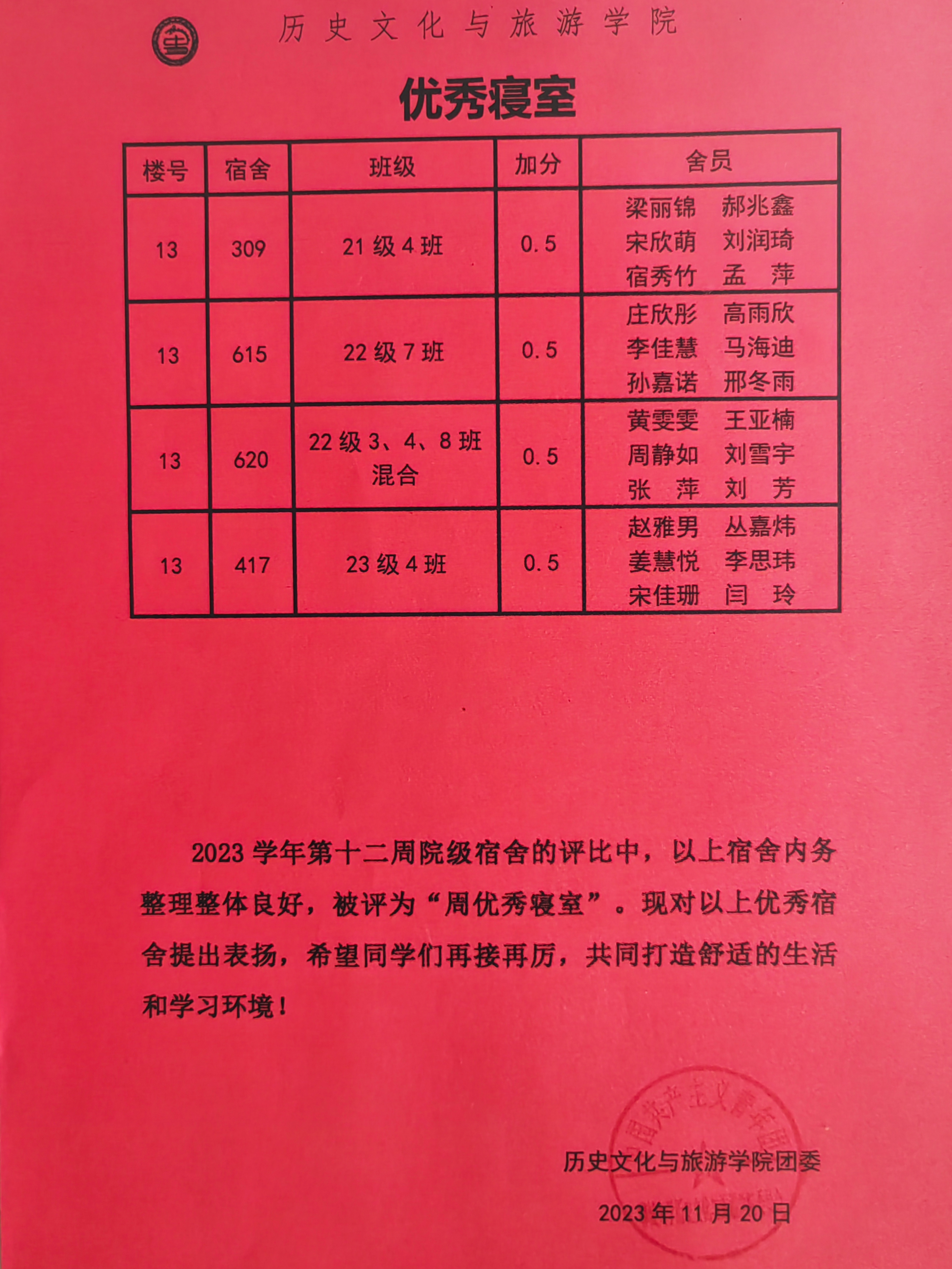 点击查看第十二周优秀宿舍评比名单