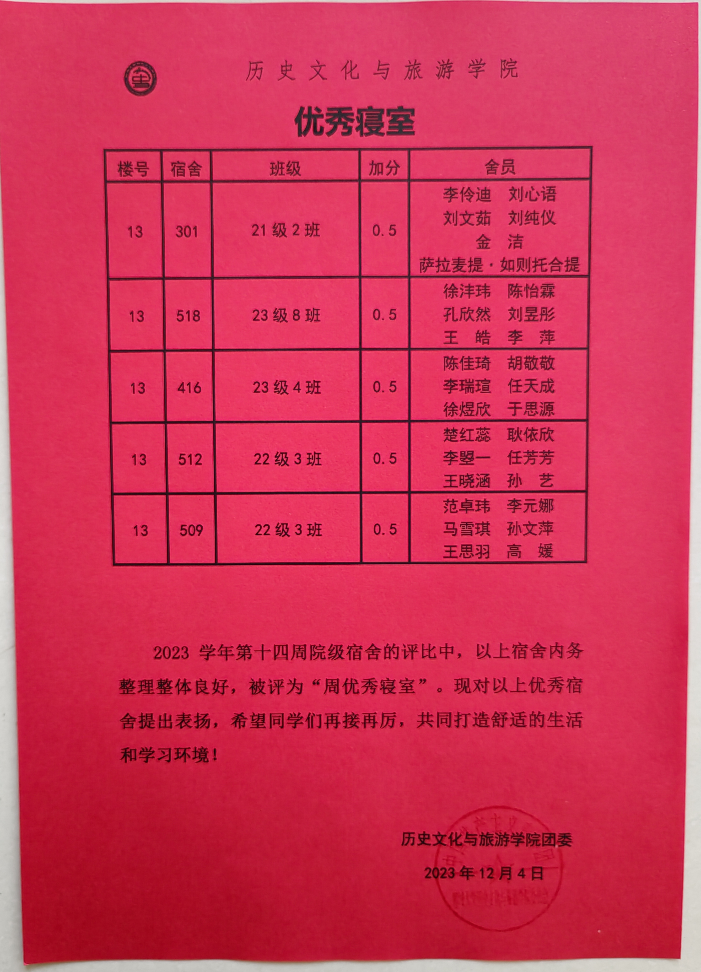 上一篇:点击查看第十三周优秀宿舍评比名单