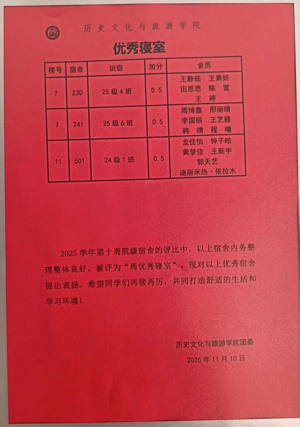 点击查看第十一周优秀宿舍评比名单