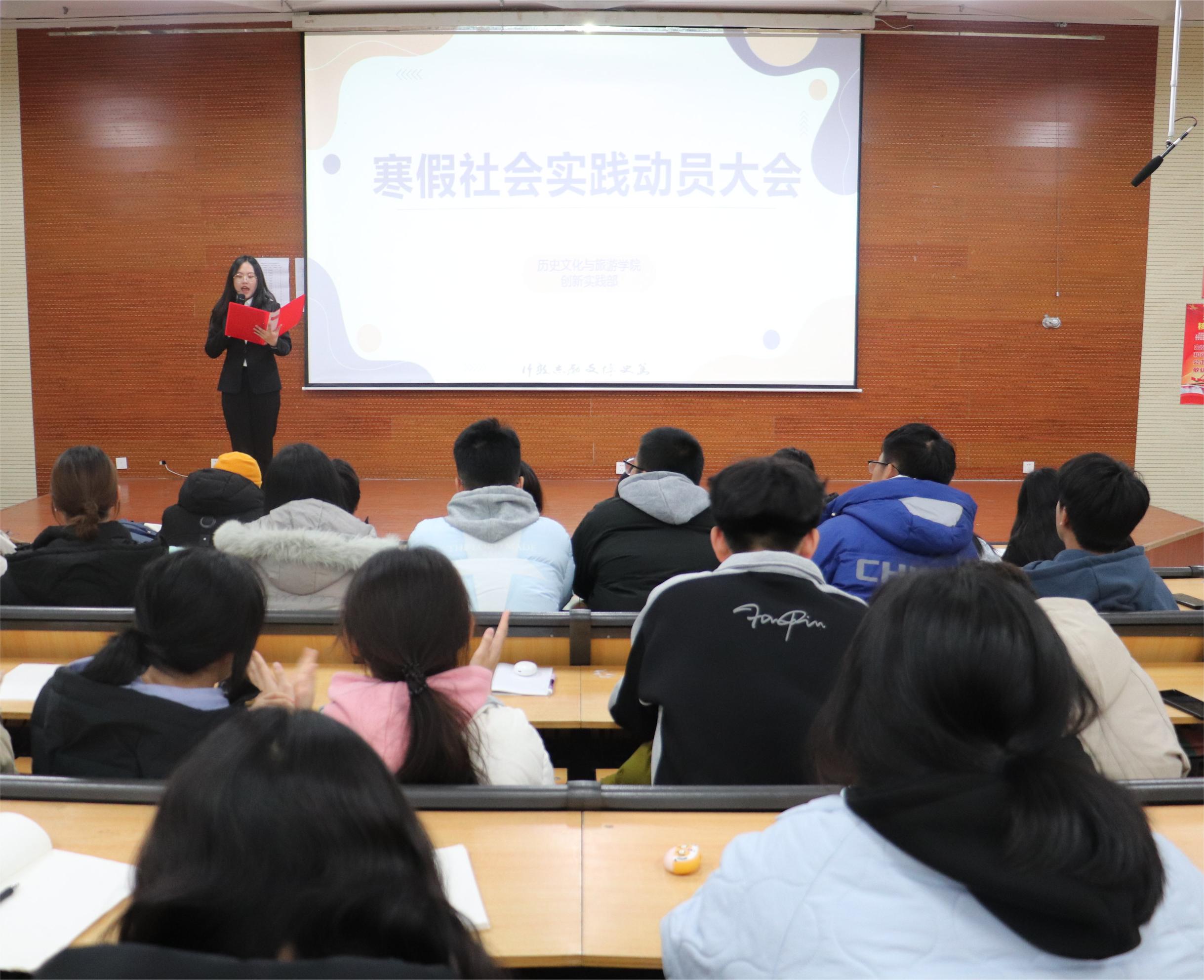 青春志愿,爱在实践。为提高青年员工投身社会实践活动的积极性,切实增强青年员工的社会实践能力,12月16日,我院于6#106报告厅举办社会实践经验分享交流会暨寒假社会实践推进大会。 大会分为实践经验分享和社会实践要求讲解两个阶段。大会第一阶段,主持人邀请暑假全国专项优秀志愿服务队代表作经验分享与交流。文旅凤鸣志愿服务队代表从团队的政协提案、调研报告、旅游手册三个方面进行讲解。服务队代表强调“只有躬耕于实践之中,做到心到、眼到、口到,才能有效实现个人价值”的实践理念。随后,春雨支教服务队代表讲述了山东队和贵州队两只助学队伍的选拔和培训过程,并通过视频为同学们展现两支队伍的助学风采,充分展现“有一份光、发一份热、将爱留于所需地方”的助学理念。大会第二阶段,相关工作人员为同学们讲述社会实践PPT、视频的制作要求及评分标准、活动点子和策划案的撰写要求、调研报告的制作要求以及社会实践拍照的注意事项和新闻稿的撰写要求,帮助同学们有效巩固社会实践活动的成果,实现个人能力的锻炼和提升。大会最后,主持人总结阐述了社会实践活动的意义,引导同学们进一步了解开展社会实践活动对个人和社会的积极影响,坚定同学们投身于社会实践活动的决心。 此次大会的顺利召开,不仅有利于引导青年员工深刻把握新时代伟大成就,自觉担当强国使命,主动投身社会实践,切实增长见识才干,在生动火热的社会实践中唱响嘹亮激越的青春之歌,而且有利于充分发挥社会实践活动实践育人、提升素质教育的重要作用,有效推动公司假期社会实践工作稳步开展。 (供稿摄影:岳珍珠 王舒心 初审:岳珍珠 复审:吴志钰 终审:尤姗姗)