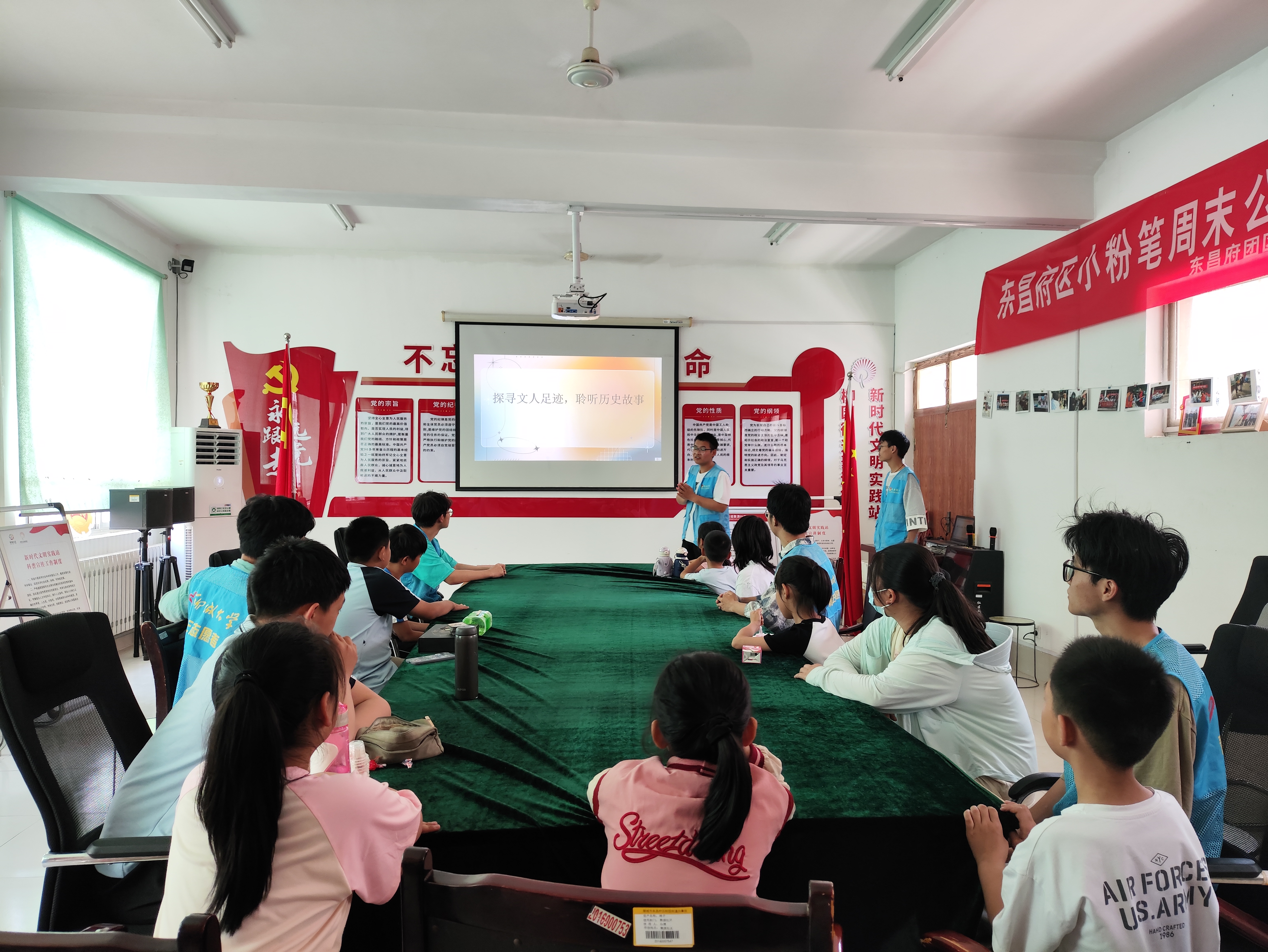 滚滚长江东逝水,浪花淘尽英雄。为加强小朋友们对历史文人的了解,增强小朋友们的民族自信心与文化自豪感,5月26日,我院于聊城市聚源社区举办“探寻文人足迹,聆听历史故事”活动。 志愿者们以PPT展演与科普视频相结合的方式,向小朋友们介绍爱国诗人屈原与乱世枭雄曹操的人物生平、典型事件,并针对他们的性格与特点进行概括性评价。志愿者们分别选取了二人最具有代表性的诗词——《离骚》和《龟虽寿》进行朗诵表演,从“创作背景”“诗体文风”“文学注释”三个方面详细介绍两篇诗词的大意与不同的感情基调,带领小朋友们品鉴赏析经典语句与古典意象。在两首诗词的横向对比中,小朋友们深刻体悟到两首诗词中蕴含的为国献身、追求光明的家国情怀与奋斗不息的乐观主义精神。 志愿者们与小朋友进行游戏互动,小朋友们踊跃争先,积极回答问题,志愿者们耐心为小朋友们解惑。志愿者们呼吁小朋友们要不忘人文历史,在历史故事中认识文人风骨、感受历史文脉。小朋友们纷纷表示将会熟读历史故事,传承我国的文化宝藏。 本次活动的顺利举办,不仅有利于帮助小朋友们感悟诗词魅力,追忆先人成就,提高小朋友们对于历史的学习兴趣,而且有利于鼓励小朋友们积极挖掘文化矿藏,以历史名人为榜样,树立前进标杆,为实现中华民族伟大复兴添砖加瓦。