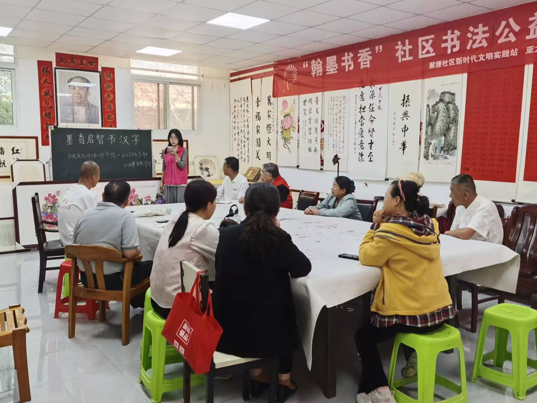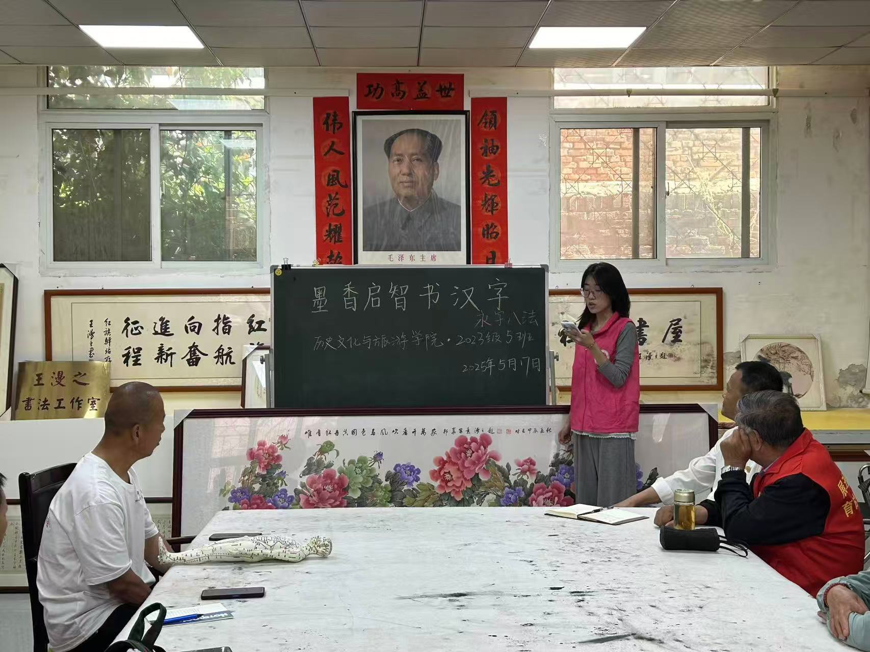 为丰富群众的精神文化生活,传承中华优秀传统文化,厚植文化自信根基,5月17日,我院于聊城市聚源社区举办“笔舞墨香世界,字传文化情怀”活动。 书法文字,是中华文化中熠熠发光的瑰宝,承载着千年的智慧与积淀。志愿者以中国文房四宝“笔墨纸砚”为导入,通过PPT向群众展示关于书法、笔墨画等传统文化的丰富内涵,使其初步了解笔墨文化。在讲解过程中,志愿者与群众热情互动,组织其参与知识问答小游戏,并围绕仓颉造字的传说、“孝”字背后蕴含的家庭伦理以及“信”字承载的诚信之道三个故事展开汉字经典的分享,形象勾勒出中国人代代相传的家庭伦理图谱。志愿者鼓励群众结合生活实际分享对汉字内涵的理解,进一步感受中华优秀传统文化的博大精深和独特魅力。 在交流讨论环节,志愿者向群众分发文化宣传手册,从笔墨纸砚的选材工艺到书法练习的基本方法,志愿者细致讲解,耐心解答群众的疑问,帮助其对笔墨文化有更加全面、深入的了解。活动进入尾声,志愿者发出倡议,鼓励群众积极参与文化传承活动,让优秀传统文化在传承中不断发展创新,焕发出新的时代活力。 本次活动的顺利举办,不仅有利于为群众搭建近距离感受中华优秀传统文化魅力的平台,领略笔墨文化的韵味与风采,而且有利于为笔墨文化的传承贡献青春力量,为传统文化的创造性转化和创新性发展注入新的活力。 (供稿:赵敏 陈妍 陆雅馨 初审:宋佳珊 复审:李月 终审:尤姗姗)