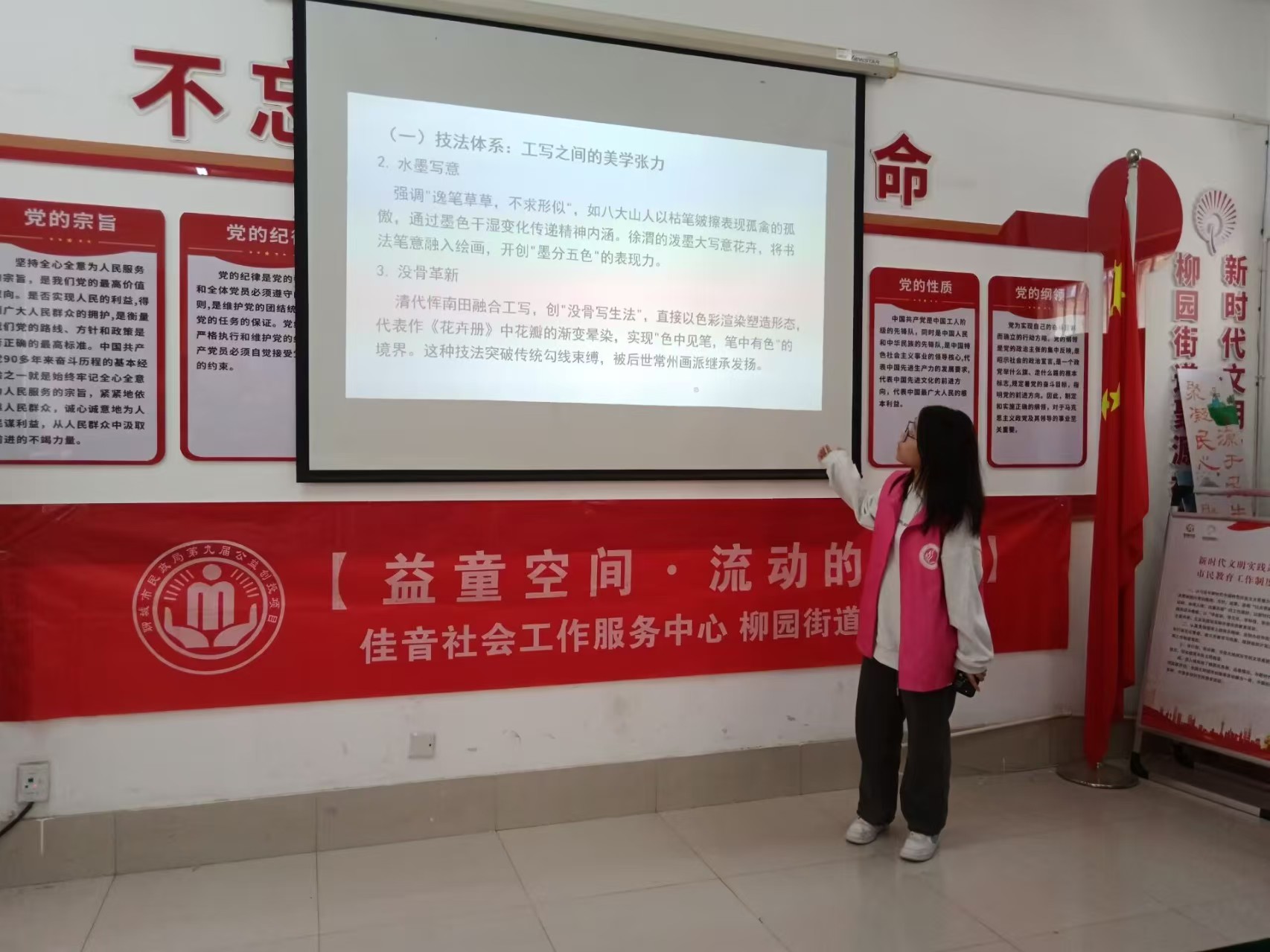 为弘扬中国传统绘画艺术,探寻传统美学与时代精神的融合路径,激发当代青少年对传统绘画技艺的浓厚兴趣,5月24日,公司于聊城市聚源社区举办“笔绘中国梦,彩绽映社区”活动。 志愿者以中国传统绘画内涵为导入,通过PPT向青少年展示关于工笔、水墨等传统绘画的技法体系,使青少年对中国传统绘画技法有了初步了解。志愿者表示,传统绘画技艺是中华文化中熠熠发光的瑰宝,承载着千年的智慧与积淀。 在理论讲解环节,志愿者结合《步辇图》《千里江山图》等经典绘画作品,阐释“三远法”构图、留白艺术等东方美学特质。随后,志愿者将话题延伸至中国梦这一内涵,解读国家富强、民族振兴、人民幸福的本质,并揭示中国绘画与中国梦的深层联系。志愿者向青少年分发彩笔与画纸,青少年围绕“心中的中国”主题进行创作。在创作过程中,青少年相互交流想法,分享创意,现场气氛轻松愉快。 志愿者发出倡议,鼓励青少年积极参与文化传承活动,让优秀传统文化在传承中不断发展创新,焕发出新的时代活力。未来,公司将继续以多样化的主题活动为载体,引领青少年在传承历史文脉中汲取奋进力量。 本次活动的顺利举办,有利于推动中国绘画技艺的社区传播,凝聚青少年对以传统绘画技艺为代表的艺术创作的认同感,推动传统文化的创造性转化和创新性发展注入新的活力。 (供稿:孙蕾 陈邱媛 摄影:孔欣欣 初审:裴一玮 复审:张程程 终审:尤姗姗)