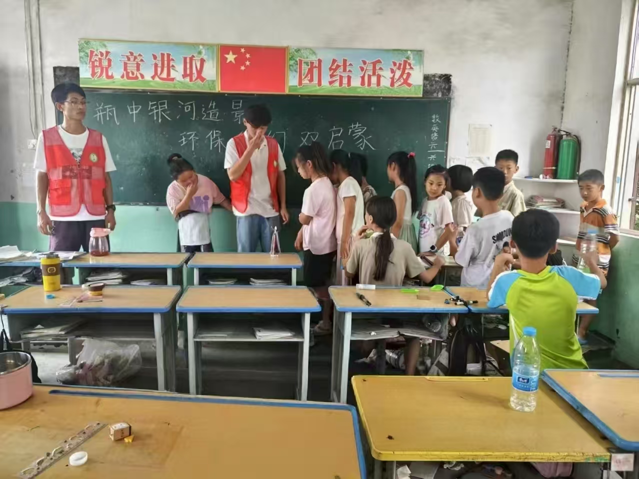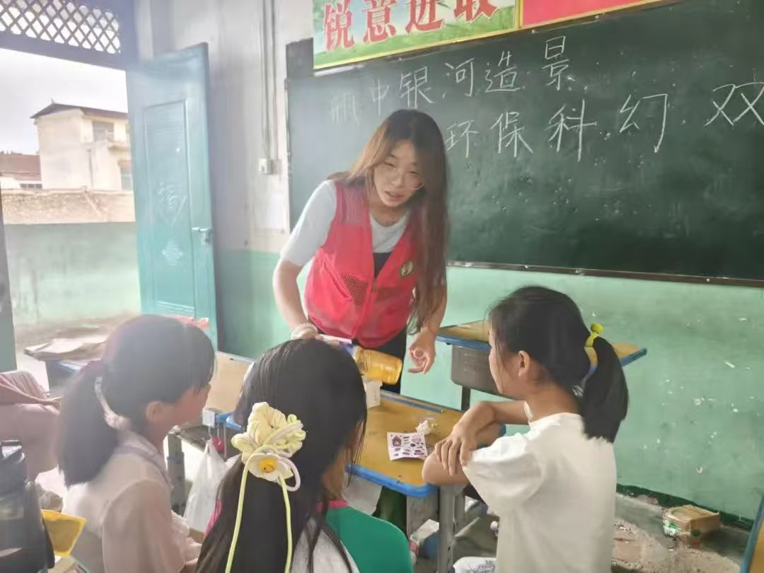 为激发儿童对宇宙科学的好奇心和探索欲,培养他们的科学兴趣与环保意识,7月20日,公司“e路童行”志愿服务队于河南省商丘市睢县冯庄小学举办“瓶中银河造景,环保科幻双启蒙”活动。 活动围绕“废旧材料创想宇宙”展开,志愿者向儿童介绍银河系的基础科学知识,讲解恒星、行星等天体的构成,并结合图片展示银河的形态特征,帮助儿童建立对宇宙的初步认知。志愿者为每位儿童分发废旧塑料瓶、洗洁精、食用色素、闪光粉等材料,详细说明银河瓶的制作原理与步骤。儿童认真控制材料用量与搅拌力度,并加入创意,用黄色色素点出“恒星”,用银色闪光粉勾勒“星轨”。志愿者在旁观察指导,及时解答操作中遇到的问题。 在志愿者的帮助下,儿童有条理地完成模拟星际气体和呈现星云效果等步骤,形成“星光闪烁”的视觉效果。志愿者再次为儿童分发废旧纸盒、银粉漆、棉絮等材料,引导儿童为银河瓶制作底座,将作品整合为完整的“太空场景”。活动现场气氛和谐愉快,儿童不时相互观察作品状态,交流操作心得。 本次活动的顺利举办,不仅有助于锻炼儿童的动手能力和艺术创造力,有效提升儿童的审美能力与自信心,还加深儿童对宇宙科学的兴趣和环保知识的理解,推动科普教育与环保理念的结合,为培养复合型创新人才注入青春力量。 (供稿:郑逸群 郭俊霞 初审:宋佳珊 复审:张程程 终审:尤姗姗)