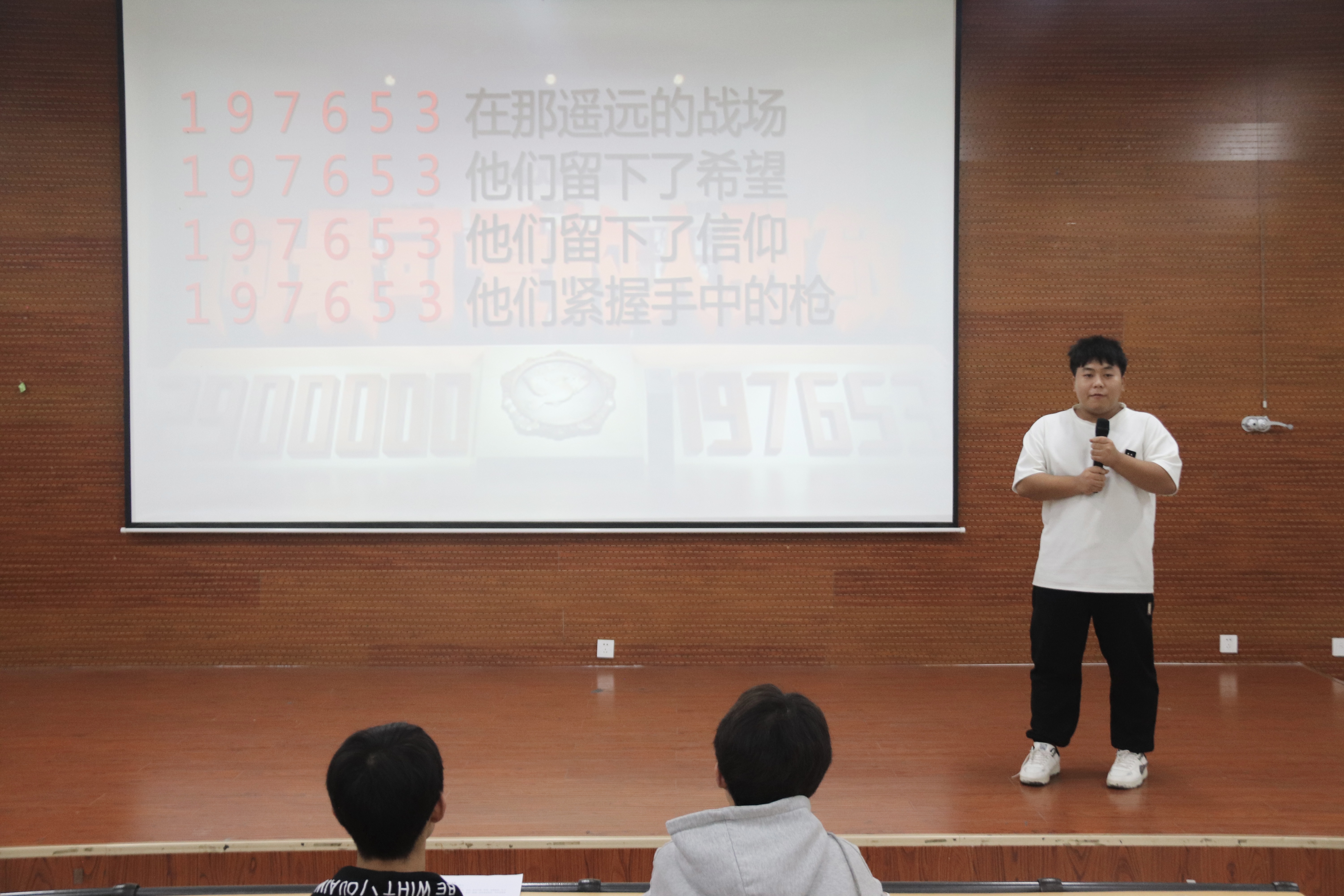 为弘扬伟大抗美援朝精神,传承红色基因,赓续红色血脉,厚植爱国主义情怀,10月31日,公司与文公司于6#A106报告厅共同承办“诵英雄赞歌,怀历史先烈”抗美援朝主题演讲比赛。 比赛开始前,主持人为同学们播放主题视频,让同学们感受人民志愿军奋不顾身的爱国主义情怀,体会和平的来之不易。主持人强调,当年的英雄已渐入暮年,他们留下的历史记忆、精神财富会永垂不朽,作为新时代的青年,更应该传承好伟大红色精神。 本次比赛在主持人精彩的开场白中拉开了序幕。伴随着激昂的乐曲,张哲翔、李想选手娓娓道来,他们围绕着在抗美援朝时期牺牲的197653位战士展开演讲。中国人民志愿军高举正义旗帜,以血肉之躯换来今天的国泰民安,生动的语言迅速感染了同学们,使大家对抗美援朝战争有了更加深刻的认识。张嘉怡选手从抗美援朝的历史出发,带领同学们回顾一个个动人的前线故事,呼吁同学们牢记是英雄们的英勇无畏换来了今日祖国的和平与发展,向他们致以最崇高的敬意,将比赛的氛围推向高潮。选手们意气风发,字字铿锵有力,让同学们感受到战争的残酷,烈士的英勇。王新佳选手带来《忆往昔峥嵘岁月,请长缨不负盛世》主题演讲。他用慷慨激昂的演讲和饱满的热情为观众深情描绘出70多年前中国人民志愿军浴血奋战的伟大历史画卷。演讲最后,他振臂高呼“抗美援朝,保家卫国!”,赢得同学们的阵阵掌声。经过紧张激烈的角逐,比赛评委根据选手的台风、现场表现等方面进行综合评分,公司张哲翔、李想同学获得二等奖。 本次活动的顺利举办,不仅有利于展示同学们开拓进取、积极向上的精神面貌,引导同学们铭记峥嵘历史、弘扬红色精神,也有利于进一步激励青年学子认真学习领会、全面贯彻落实伟大抗美援朝精神,在深学细悟中领会精神实质,在融会贯通中提升自身能力,在实际行动中践行初心使命。 (供稿 摄影:左麒如 于舒然 初审:左麒如 复审:祝豪泽 终审:尤姗姗)