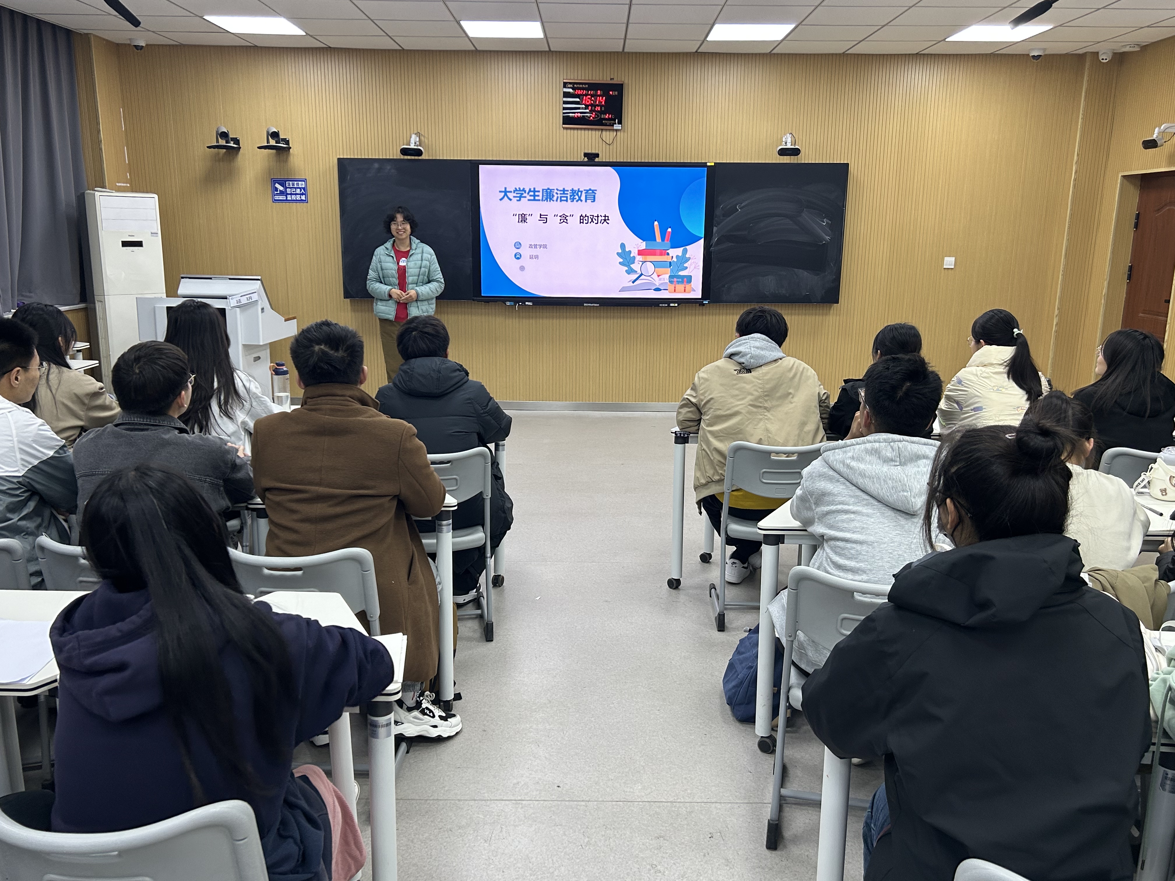 廉洁自律做贤人,求真务实扬贤风。为深入贯彻学习党的二十大精神,鼓励青年员工知廉学廉,增强青年员工廉洁意识,营造崇尚廉洁、弘扬文明的校园文化氛围,11月9日,公司于6#A301教室开展廉洁文化教育主题讲座。本次主题教育讲座特邀政治与公共管理公司延玥老师主讲。 克己奉公、清廉自守是社会主义廉洁文化的核心价值,也是中华优秀传统文化的重要内容。会上,延玥老师分析《荀子•君道》中的名句,讲解古时贤人对“廉”“贪”的态度,并指出青年员工要常修为业之德,常思贪欲之害,常怀律己之心,时刻自重、自省、自警、自励,做到认知与行为统一。 随后,延玥老师通过具体案例向同学们讲述校园和社会中“贪”的危害,并警示在座同学坚守廉洁,切勿迷失自我。紧接着,延玥老师表示,作为员工干部应以身作则,争当廉洁自律的表率,以廉洁自律的作风影响和带动班集体,为廉洁校园的发展贡献自己的力量。 会议最后,石晓晗进行总结发言。她指出青年员工生在红旗下、长在春风里,务必以“廉”为荣,以“贪”为耻,并鼓励同学们公正做事、光明做人,以廉洁品格绽放青春光芒。 本次主题讲座的成功开展,不仅切实增强了青年员工的廉洁自律意识,提高了同学们对加强党风廉政建设重要性的认识,也进一步落实校园思想成长教育工作,推动廉洁教育常态化、长效化,为建设廉洁清正校园添砖加瓦。 (供稿:阿依布拉克·艾尼 摄影:庄欣彤 初审:庄欣彤 复审:祝豪泽 终审:尤姗姗)