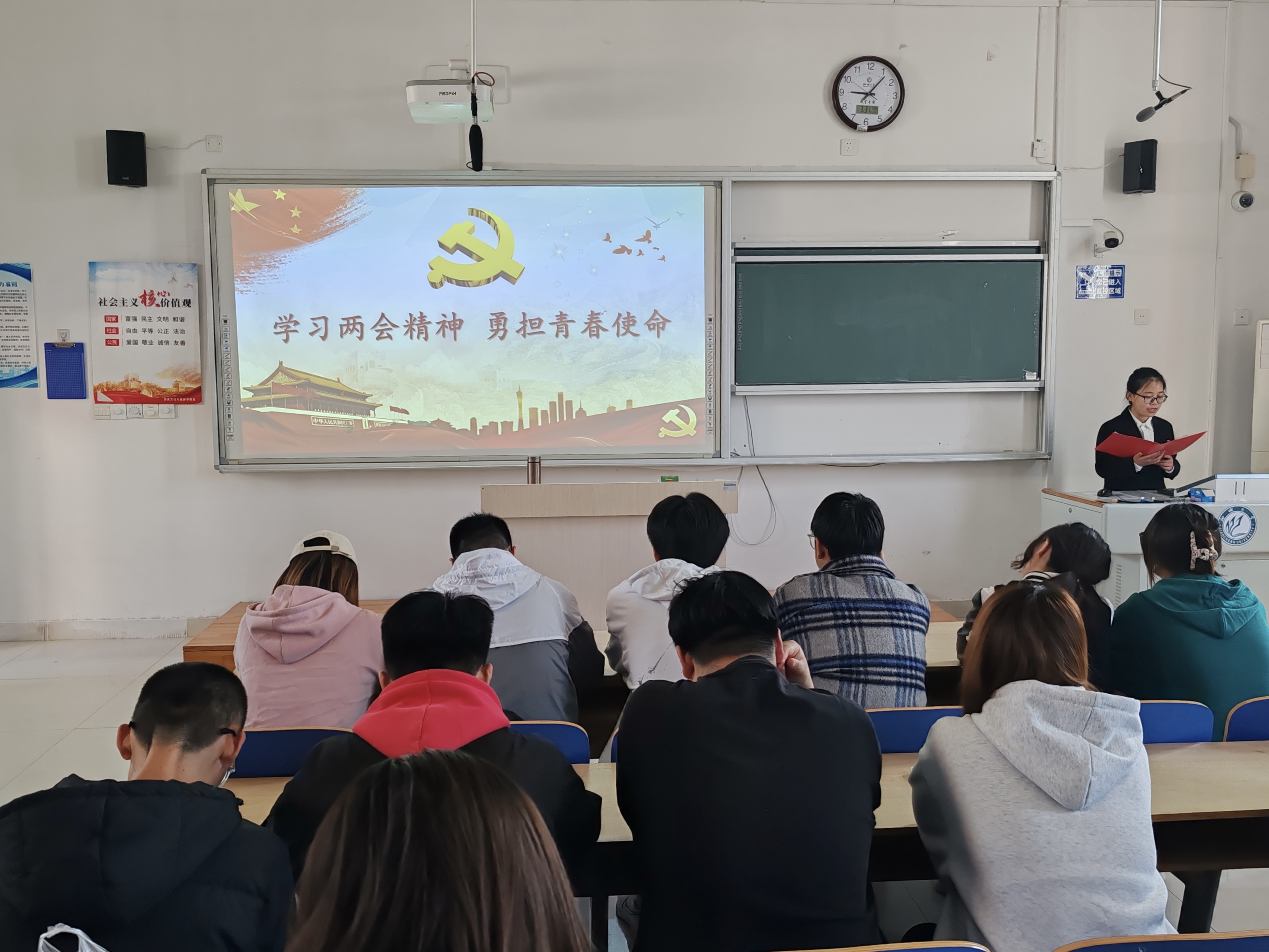 为引领青年员工深入学习两会精神,提升青年员工思想道德素养,培育信仰坚定、能力突出的新时代社会主义接班人,3月31日,我院于6#A502教室举办“学习两会精神,勇担青春使命”第四期青马工程培训会。2022级全体员工干部参加本次培训会。 会议伊始,主讲人从两会知识介绍、报告流程、报告热点、精神学习四部分展开讲解,简要概述两会基本概念与内涵,引导同学们明确其举办流程。同时,主讲人在叙述两会报告热点时,紧扣发展新质生产力的要点进行展开,即四个“新”——新链条、新优势、新引擎、新赛道,并强调两会在不同领域提出不同的讨论热点,如量子技术、生命科学等崭新赛道。 随后,主讲人通过开展击鼓传花环节,带领同学们进一步深入学习领会两会精神,并以趣味问答的形式,鼓励同学们关注时事政治,发扬两会精神,在学习工作中勇攀高峰、不懈努力,为实现中华民族伟大复兴的中国梦贡献自己的力量。 会议最后,主讲人播放两会相关视频,视频呈现出两会召开的具体情形,同时体现两会盛况中新思想、新理念的相互碰撞对改革创新的巨大作用,重申学习两会精神对于推动国家发展的重要意义。 本次青马工程培训会,使青年员工深入学习了“两会”提出的重要理论,巩固了对党史与团史的深入理解,引导青年员工培养对党、国家和社会主义的情感认同,努力成长为社会主义建设者和接班人。希望同学们在今后的学习生活中脚踏实地、敢走新路,为国家发展注入源头活水,用实干实绩书写青年担当。 (供稿:刘舒雅 摄影:刘舒雅 初审:李月 复审:吴志钰 终审:尤姗姗)