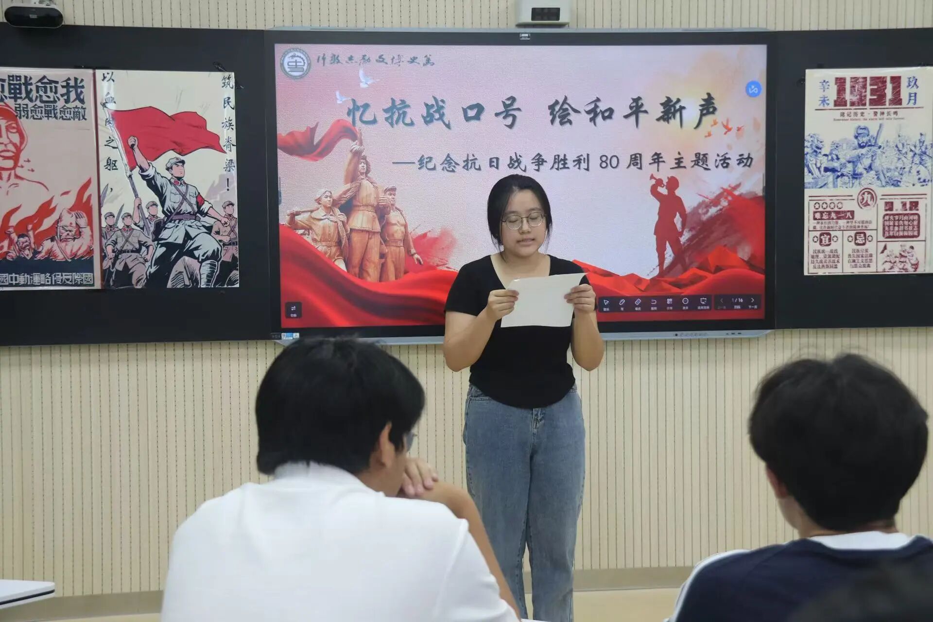 在抗日战争胜利八十周年的重要历史节点,为铭记抗日烽火中的民族抗争历史,传承生生不息的伟大抗战精神,引导青年学子在历史足迹中汲取奋进力量,8月31日,mk体育举办了“口号里的抗战精神”主题教育活动。 活动伊始,主持人以“口号里的抗战精神”为核心切入点,结合中国14年抗战历史背景,生动诠释了抗战口号在凝聚民族意志、鼓舞军民斗志中所发挥的关键作用,为整场活动奠定了厚重庄严的基调。 随后,现场播放抗战历史影像资料画面中民众的激昂、战士的坚毅以及军民的同仇敌忾,让同学们深刻感受到中华民族在烽火岁月中展现出的不屈精神。 在“忆旧口号故事”环节中,同学们踊跃上台,分享抗战口号背后的历史背景与精神内涵,用新颖独特的视角、精炼得当的语言、清晰缜密的逻辑、丰富扎实的史料,生动还原了那段充满民族气节与斗争精神的历史。 在“创和平新口号”环节,同学们以“珍爱和平、铭记历史”为主题,结合抗战精神的当代价值与青年责任,自主构思创作新口号,并阐释新口号的创作思路与和平启示,将个人理想与国家命运紧密相连。 活动最后,同学们在两块展板上书写经典抗战口号与和平新口号,这些口号作为集体记忆的承载,进一步强化了“铭记历史、珍爱和平”的宗旨。 此次抗战主题教育活动,以“小切口”展现“大历史”,以“沉浸式”传递“深精神”,加深了同学们对抗战历史的认识,将和平信念与时代责任深深植入心中。 未来,mk体育将继续立足学科专业特色,策划更多兼具思想性、互动性与教育性的红色主题活动,引导青年学子在回望历史中坚定理想,在传承精神中勇毅前行,为实现中华民族伟大复兴的中国梦注入青春力量。 (供稿:陆雅馨 郭艺泽 摄影:崔汉卿 罗佩华 初审:魏志鹏 复审:李月 终审:石晓晗)