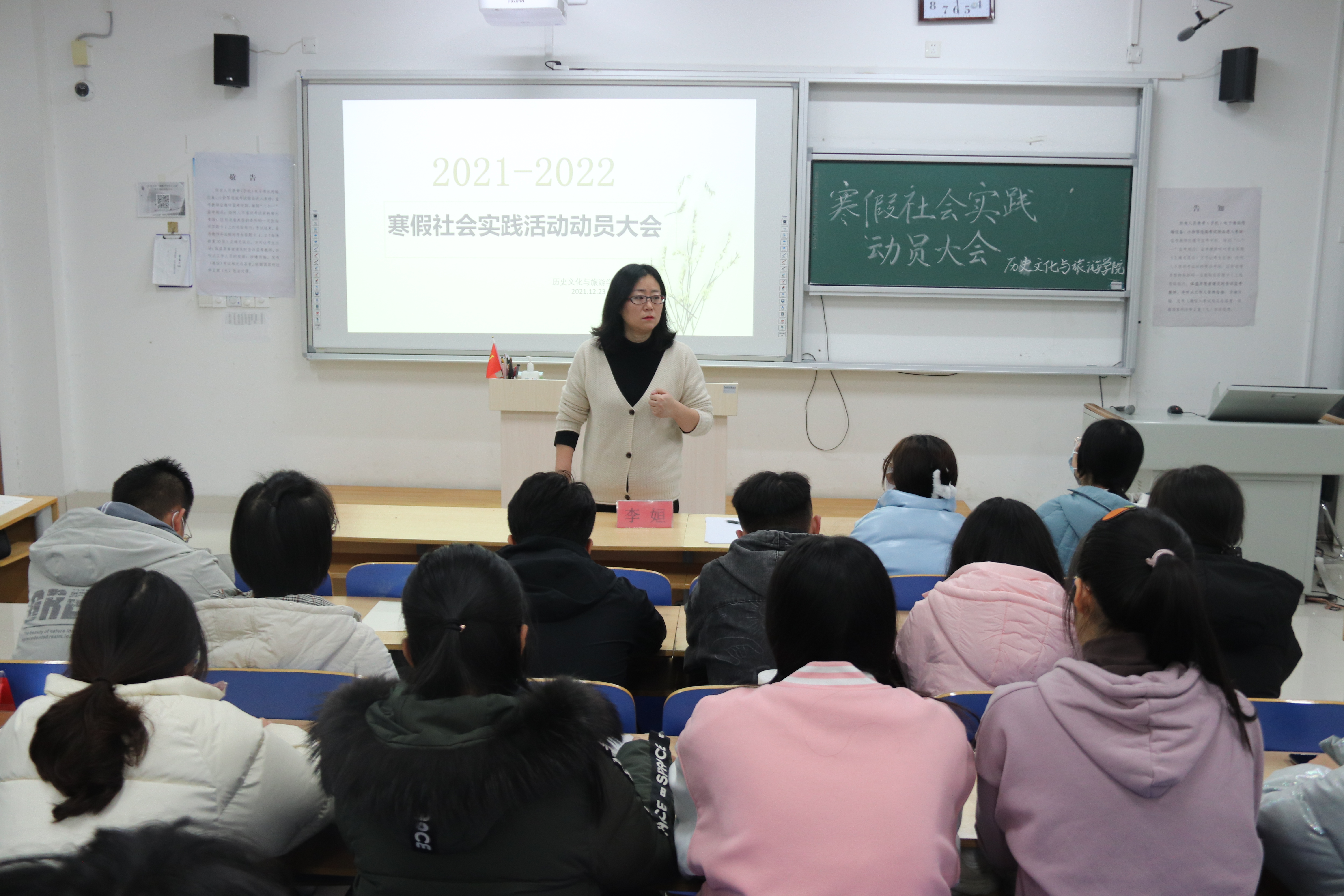 老员工社会实践活动是引导员工走出校门、接触社会、了解国情,使理论与实践相结合、知识分子与工农群众相结合的良好形式。为推动寒假社会实践的顺利进行,12月23日,我院于6号教学楼A502教室召开寒假社会实践活动动员大会。团委书记李姮及员工会全体成员参加了此次会议。 会议伊始,实践拓展中心成员秦景怡讲解了社会实践活动中关于策划案的要求,围绕策划案格式、排版、内容等多方面展开详细宣讲。随后,许烯烯向同学们展示应如何制作答辩PPT,并对活动主题和实践内容方面进行重点讲解。除此之外,王诗晴通过展示社会实践调研报告,帮助同学们建立对调研报告的初步了解,助力同学们更顺利地完成社会实践活动。讲解完社会实践前后期的写作工作,新闻宣传中心成员姜礼范讲述了社会实践活动中对于照片拍摄的要求,强调志愿者在活动中需佩戴绶带、海报展板制作不能太简陋等常见问题。大会的最后,团委书记李姮指出社会实践活动主题的选定不能忽视社会热点,应紧紧围绕时事,做到推陈出新与时俱进,希望同学们能以积极认真的态度投入到活动中去,开展高质量社会实践活动,同时强调了出行安全的重要性,叮嘱同学们外出举办社会实践时务必要做好个人防护措施,遵守防疫要求。 本次动员大会的召开,不仅有利于帮助同学们掌握社会实践活动的相关要求,为寒假社会实践活动的顺利开展奠定基础,而且有利于提高同学们的积极性,增强其服务社会的意识,推动同学们为社会发展贡献自己的力量。(通讯员 仇默涵)