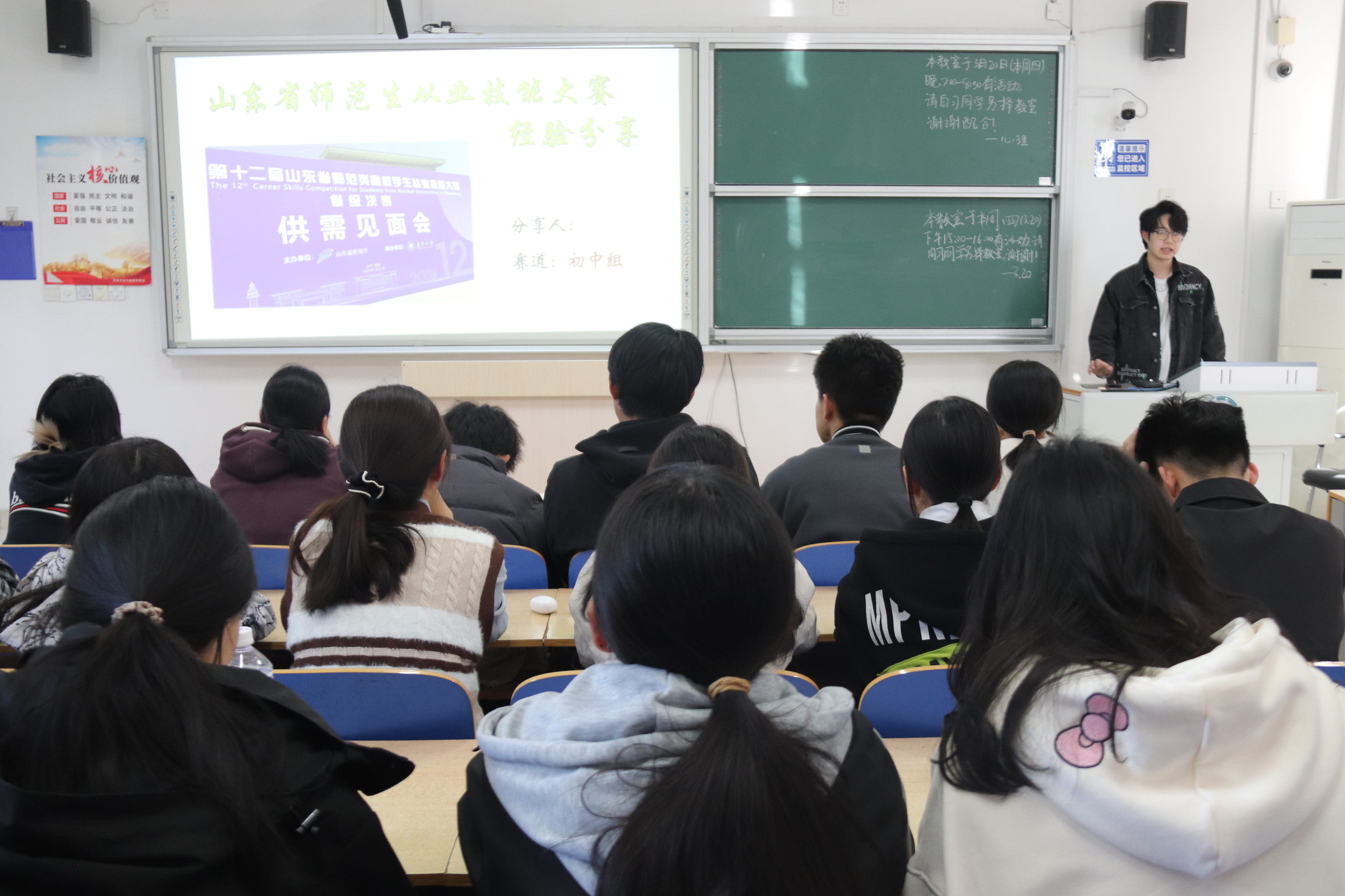 为帮助同学们科学规划学业,收获实用的学习策略和经验,熟练掌握复习技巧,3月19日,历史文化与旅游学院于6#A502教室举办“榜样的力量”经验分享会。本次分享会邀请到2021级员工祝豪泽。 祝豪泽围绕师范生从业技能大赛展开经验分享。他以大赛赛道设置为切入点,分析不同赛道的差异化特征与准入要求,帮助同学们明确参赛方向,构建起清晰的赛事认知框架。同时,祝豪泽以教学理论和课程设计原理为依托,深入阐释比赛内容,包括教学设计、模拟授课、教学反思等核心板块,并对每个环节的评分标准和重点难点进行详细拆解,点明关键得分点与潜在失分点,助力同学们深度理解赛事评判标准。 在谈及参赛准备时,祝豪泽结合自身的实践经验,着重强调日常积累教学案例与教学方法的重要性。他建议同学们养成常态化收集教学素材、总结教学策略的良好习惯,通过回顾个人教学实践逐步摸索出适合自己的教学路径。同学们纷纷表示此次经验分享会具有极高的价值,自己在学习方法、考研规划、职业发展方向等方面收获颇丰,未来将会把所学方法融入到日常学习中,努力实现自身的成长与突破。 本次经验分享会的顺利举办,不仅有利于加深同学们对师范生从业技能大赛的认识,明晰最新教学动态,明确个人职业发展方向,而且有利于为同学们搭建交流互动的平台,营造浓厚学习氛围,推动学风建设。 (供稿:王凯 刘雪睿 摄影:陆雅馨 初审:宋佳珊 复审:李月 终审:尤姗姗)