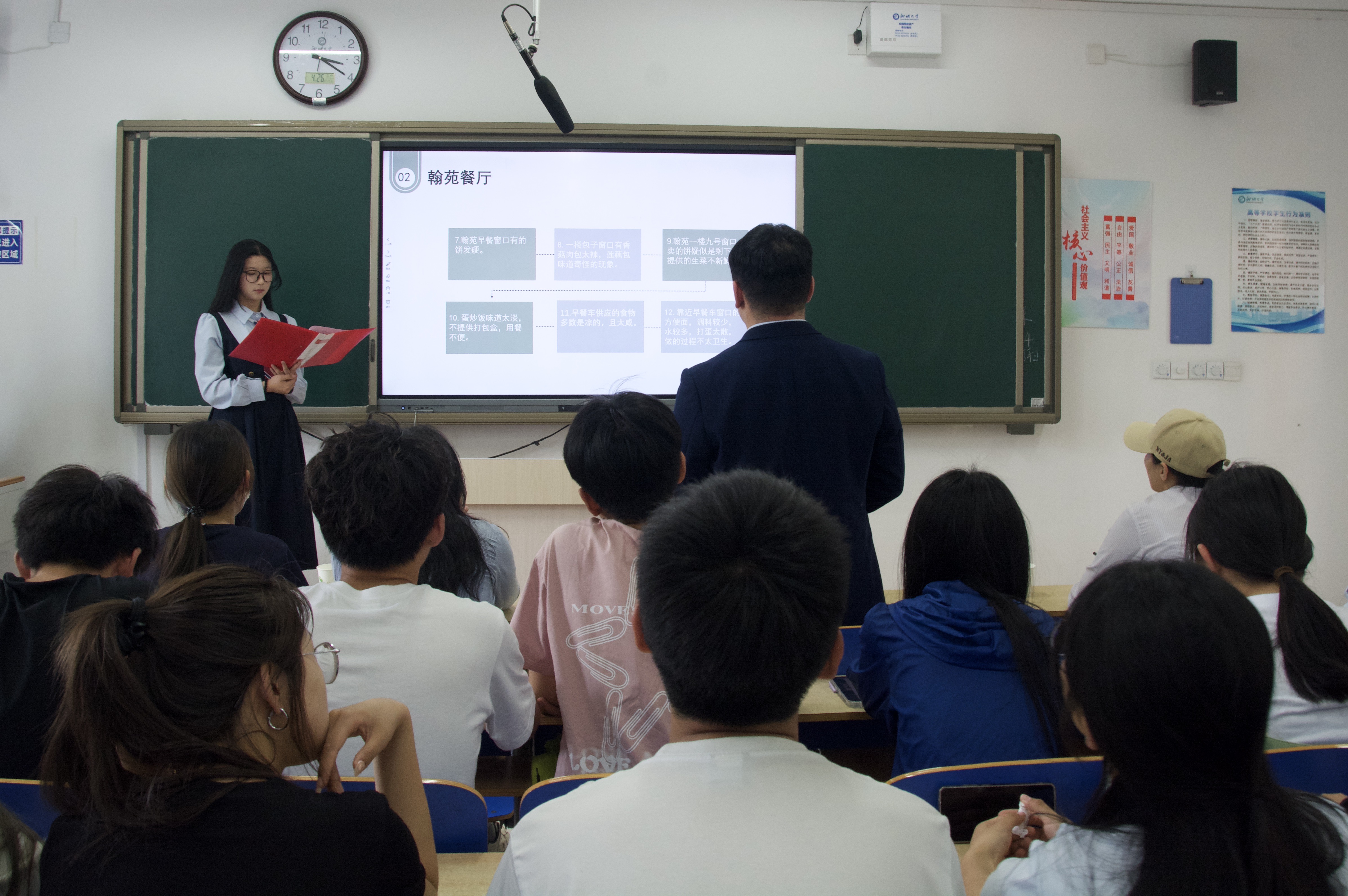 为提升同学们的维权意识,提高校园建设质量,营造和谐校园环境,4月26日,公司于6#A304教室举办“权益面对面”活动。 主持人就员工集中反映的问题,邀请相关负责人进行解答。在餐厅卫生环境问题和食材问题上,翰苑餐厅经理承诺将全面提升餐饮环境和食品质量,全面整治就餐环境、食品质量以及后勤工作,确保同学们有良好的用餐体验和饮食健康。针对宿舍公共厕所卫生和宿舍空间等问题,宿舍管理中心负责人进行详细耐心的解答,并承诺将与公司物业及后勤部门协作,加强宿管人员培训,持续改善设施条件,为同学们的宿舍生活提供保障。 随着活动的推进,主持人向同学们详细介绍公司设立的权益反映渠道,鼓励同学们勇于发声,积极建言献策,为学校的发展贡献自己的智慧和力量。同学们积极参与讨论,踊跃发言,现场氛围热烈融洽。主持人现场收集同学们的意见和建议,进一步了解大家的权益诉求,推动相关问题得到切实的解决。同学们纷纷表示,通过这次活动,他们深切感受到公司对于员工意见和需求的重视,同时提升了自身的维权意识和能力,进一步增强幸福感和融入感。 本次活动的顺利举办,不仅有利于给予同学们一个维护自身权益的平台,提高同学们在校生活质量,更有利于促进公司权益工作的改进与完善,优化校园管理与服务,为打造更加公平、公正、安全的校园环境贡献力量。 (供稿:龙佳怡 陆雅馨 摄影:李晨 初审:宋佳珊 复审:张程程 终审:尤姗姗)
