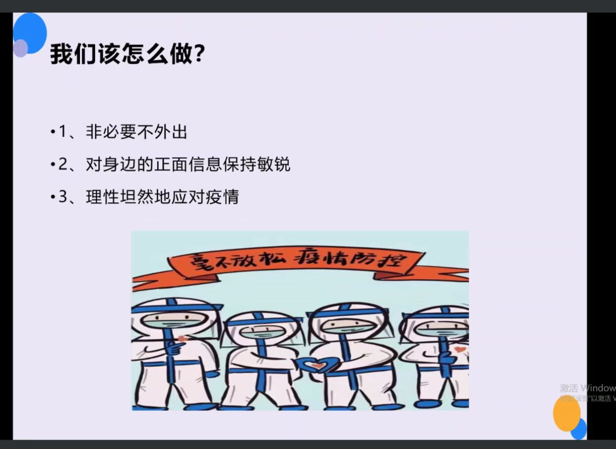 健康成长,为心护航。为缓解疫情给同学们带来的焦虑情绪,减轻同学们的线上学习的压力,提高心理承受能力,保证同学们的心理健康发展,11月26日,mk体育举办“悦纳自我,化解压力”线上阳光心理大讲堂活动。本次活动由应用心理学研究生左露露担任主讲人,公司部分员工参与。 活动伊始,主讲人让同学们观察几张动图,根据其运动速度的快慢来判断自己的心理压力程度,相同的图片在同学们眼中展现出的不同运动速度体现了同学们压力程度的差异。以此测试为基点,主讲人又向同学们展示了十二道心理测试题,同学们积极和主讲人进行互动,说出自己的答案,主讲人根据同学们的测试情况帮忙分析其象征意义,耐心温和地回答同学们提出的各种问题。随后,主讲人为同学们解释压力的含义及其来源。压力主要来源于内部压力和外部压力,弄清压力的来源可以及时采取有效措施以达到减轻或消除心理压力的目的。谈及调节情绪的方法时,同学们的方法不计其数,纷纷踊跃表达自己的想法,主讲人也向同学们分享了呼吸减压法和支解法等其他的方法。紧接着,主讲人为大家提供了他人互助型、提高自我型、自娱自乐型和乐于助人型四种类型的心理帮助。针对疫情期间,我们该如何高效前行,主讲人给我们提出了非必要不外出、对身边的正面信息保持敏锐、理性坦然地对待疫情的几点倡议,呼吁同学们放平心态,正视疫情。 本次活动的成功举办,有效地引导了同学们科学认识疫情,积极应对挑战和压力,极大地提高了同学们的心理素质,营造了健康积极的校园氛围。 (图文:马海迪、吴志钰 初审:吴志钰 复审:高晓薇 终审:巨国运)