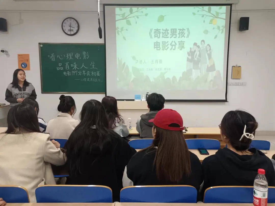 透视心灵,关注成长。为帮助同学们搭建锻炼心理品质、提高心理素质的平台,引导同学们解读相关心理学理论,3月16日,公司于6#A304教室举办“看心理电影,品百味人生”电影PPT分享会比赛。 此次比赛采用评分制,员工评委根据每组参赛人员PPT的制作、制作主题的相关性和演讲展示三方面进行综合评分并排名。活动开始,参赛人员依次上台进行电影分享。杨晓嘉同学通过分析影片《心理奇旅》主人公乔伊的奇幻之旅,引导同学们感悟影片中“火花”的真正内涵,强调人活着的意义不是在于实现目标,而是为了感知生活的爱恨与成败;王肖雅同学通过介绍影片《奇迹男孩》的主要内容和叙事手法,带领同学们深入解剖影片中所蕴含的深刻内涵,学习影片中的心理知识,从多方面强调积极态度对行为的重要影响;修一涵同学播放视频向同学们展示影片《地球上的星星》的重要片段,介绍了患有阅读障碍的问题员工伊夏在美术老师尼克的帮助下发展个性、逐渐成熟的故事。此外,其他同学也分享了自己喜欢的心理电影以及从中获得的心灵感悟。选手讲解完毕后,员工评委将每组所得分数进行统计,确定本次晋级初赛的小组有4组,分别是《心灵捕手》孟银菲、王淑贞、李文;《心灵奇旅》杨晓嘉、苟旭婷、张新宇;《飞屋环游记》黄晓婷、陈俐颖、王婷;《地球上的星星》修一涵、魏雨彤、王晗。 此次分享会比赛的成功举办,有利于同学们自觉学习心理学知识,分享心理感悟,营造一种关注心理健康的良好氛围,让同学们在有趣的心理比赛中吸取心理知识,获得心灵成长。 (图文:岳珍珠 初审:吴志钰 复审:和稀如 终审:辛超)
