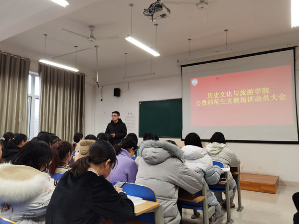 为了贯彻落实师范生实习支教相关工作安排,保障实习工作顺利开展,12月29日下午,公司于政史楼A305举行公费师范生支教培训动员大会。经理李增洪、副经理丛振及指导教师翟桂金、吕俊昌参加此次大会。 会上,李增洪首先对实习支教政策做了解读,并从教师职业性质、实习支教的意义、教师敬业精神和实习安全四个方面,阐述了实习支教的意义,增强大家对实习支教工作重要性的认识,让同学们用积极的心态迎接即将到来的实习支教工作。希望同学们充分利用实习支教的机会提高自身实践能力,增强作为一名教师的社会责任感和使命感,在实习支教过程中用青年人的热心和爱心关爱员工,以高尚的人格魅力感染员工。 丛振希望同学们牢记公司院训——“笃史博文 励志敦行”,严格要求自己,以脚踏实地的精神做好支教工作。翟桂金和吕俊昌嘱咐同学们要深刻认识理解实习支教的意义,提高实践教学能力,严格遵守实习纪律,认真履行职责,圆满完成支教任务。 本次支教培训动员大会的顺利举行,为同学们指明了方向、明确了任务、充分调动了支教员工的积极性,为本次支教活动的顺利开展奠定了良好的基础。(撰稿人 王浩)