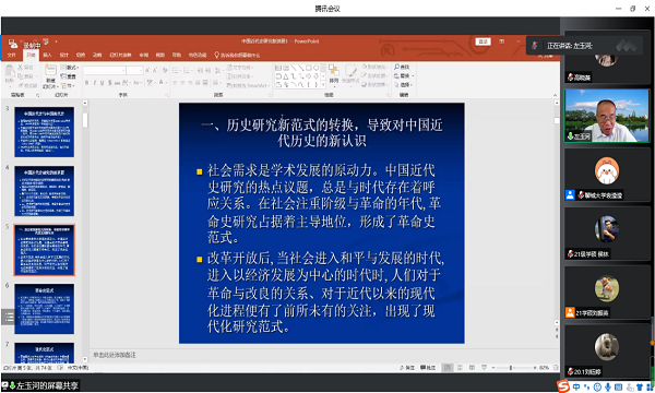 8月1日至8月3日,在澳大利亚迪肯大学人文和社会科学公司的支持下,公司于线上举办“湖畔问学”全国优秀老员工夏令营活动。广东海洋大学、吉首大学、赣南师范大学、西华师范大学等十四所高校的营员齐聚“云端”,一同开启这场追求知识的旅途。 今天是“湖畔问学”夏令营的第二天,营员们充分吸收了昨日的知识,并对今天的学习充满期待。教授团队将全方面、多层次地为营员们剖析、解答问题,助力营员们的求学之梦。 澳大利亚迪肯大学何包钢教授为同学们作了题为《亚洲地区主义的起源现状和趋势》的学术报告。何包钢教授分别从20世纪地区主义的崛起及其主要特征、亚洲地区主义、亚洲地区治理框架、大国竞争和亚洲地区主义、未来亚洲地区主义发展的方向等五个方面进行讲解。其中,他主要分析了泛亚主义和亚太区域主义较量以及中美在地区主义上的竞争,指出了美国战略上的短板,并以南海行为规则为例,提出了进一步修改同盟机制的可能性和条件。在讨论环节中,何教授详细地回答了同学们的问题,使营员们深化了对亚洲地区主义的认识。在最后的总结中他讲道,地区主义是适合人类要求统一这个时代要求而产生的,它是人类要求统一的一个过程和方法,并且在中美竞争的条件下,地区主义将会继续发展,这对人类和亚洲来说都是一个福音。 中共山东省委党校张传鹤教授作了题为《牢牢掌握意识形态工作领导权,建设具有强大联聚力和引领力的社会主义意识形态》的学术报告。张传鹤教授通过对意识形态及意识形态工作的概念解析,点明了当前意识形态工作面临的形势和任务,以及意识形态工作的极端重要性,指出应建设一支专、兼、自相结合的宏大的意识形态工作队伍,形成宣传思想政治工作的强大合力,为新时代开创党和国家事业新局面提供坚强的思想保证和强大的精神力量,从而解决好事有人干的问题。 中央党校张太原教授为同学们作了题为《蒋介石日记中的中国共产党》的学术报告。张教授围绕蒋介石日记,主要分析了蒋介石日记中的史料和中国共产党的成功之道。张教授指出,蒋介石日记对中国共产党的记载与评论,反映出蒋介石作为民国历史人物对当时中国共产党发展状况的主观认识与看法,但他也强调道“真实不等于正确、全面”、“蒋介石之真不等于历史之真”,要辩证地看待蒋介石日记,正确认识中国共产党。他以独特的视角,通过剖析日记中的真实记录,揭示了国民党在理论、思想、军队、人心等方面的缺陷,明确中国共产党建设发展的独特优势和成功之处,阐明了中国共产党的成功关键是“以人民为中心”。最后,张太原教授耐心解答同学们的疑惑,在不同角度加深了同学们对于中国共产党的认知。 中国社会科公司左玉河教授为夏令营同学们作了题为《新范式、新史料与新方法:中国近代史研究的新进展》的学术报告。左教授主要从新范式的转换带来新认识、新材料的发掘产生新突破、新理论方法的应用引出新领域三个方面进行讲解。他以近代史研究中革命史范式与现代化范式的演变与比较为出发点,通过举例两种范式对鸦片战争、辛亥革命、戊戌变法、义和团运动等的不同解释来说明在近代史研究中要灵活运用范式,并针对当前学术研究中“民国热”的现状,为中国近代史的研究提出了新的研究方向和思路。最后左教授向同学们介绍了当前研究出现的新领域,如对于社会文化史和新文化史的研究,并告诫同学们作为历史研究者要追求真实的历史,强调历史研究只有建立在史料的基础上才能行得正、走得稳;只有插上理论的翅膀,才能飞得高、飞得远。 今天四位教授精彩的报告内涵丰富、意味深长。尽管营员之间、营员与教授之间的距离相隔甚远,但一颗颗求学之心将彼此的心灵距离慢慢拉近。