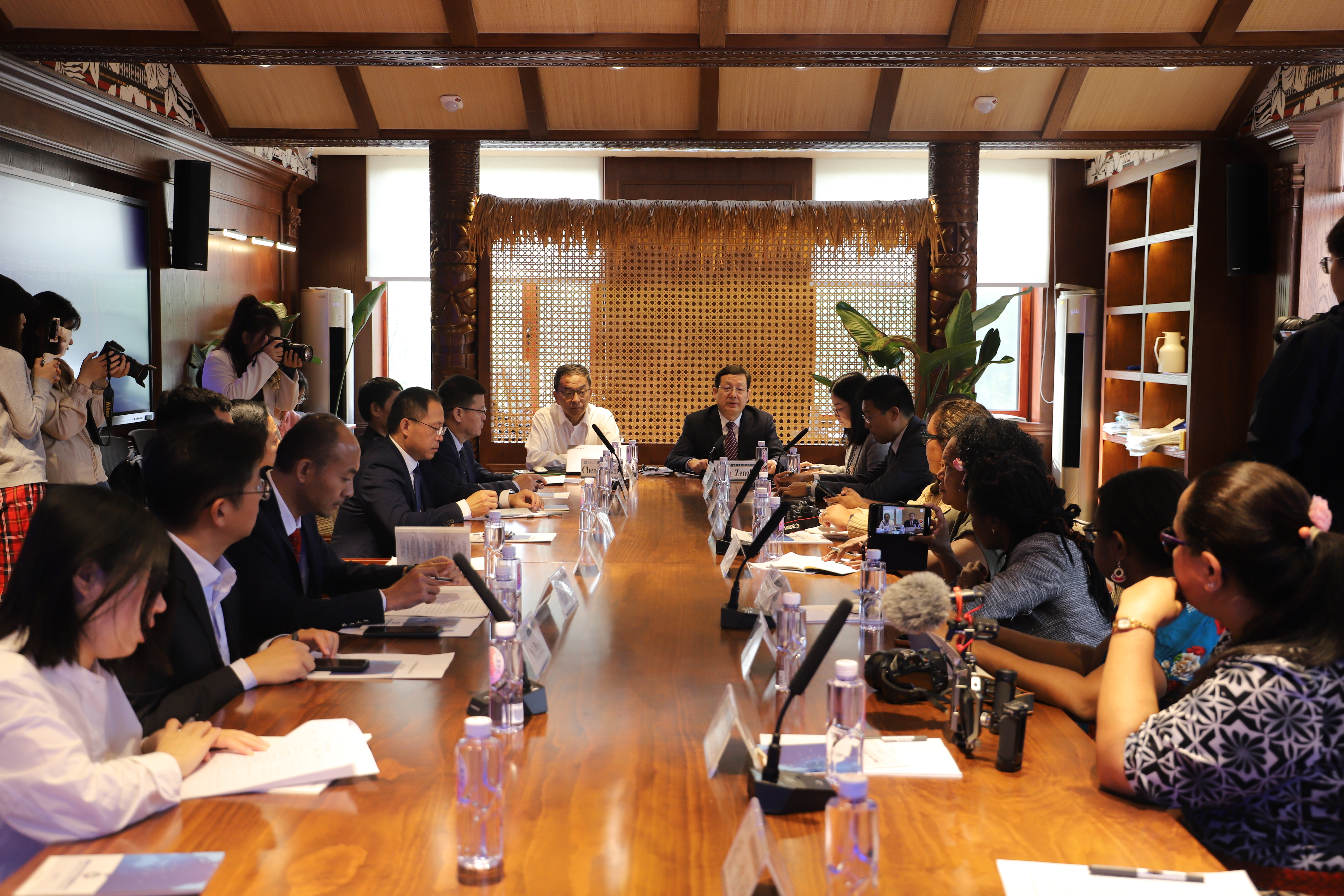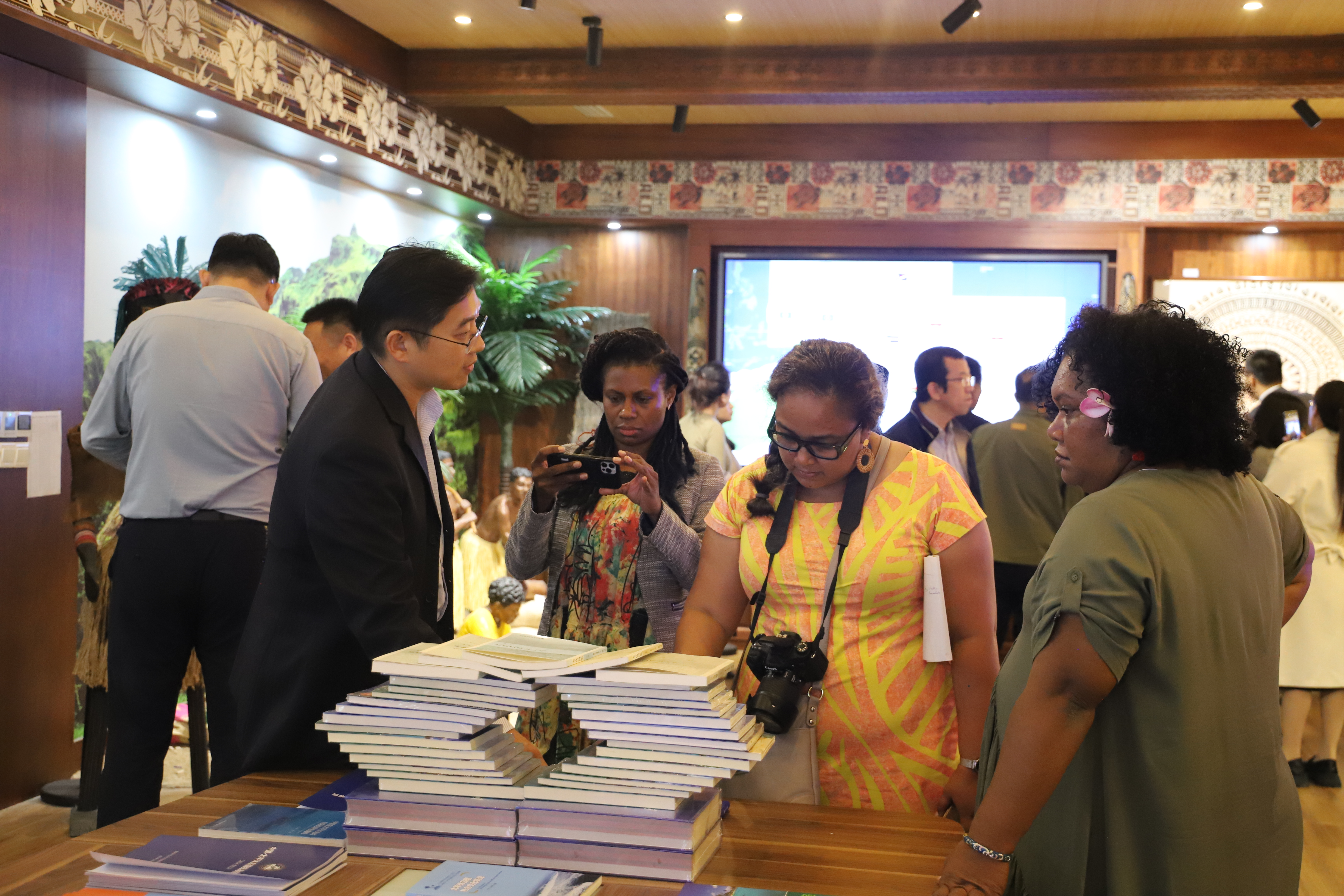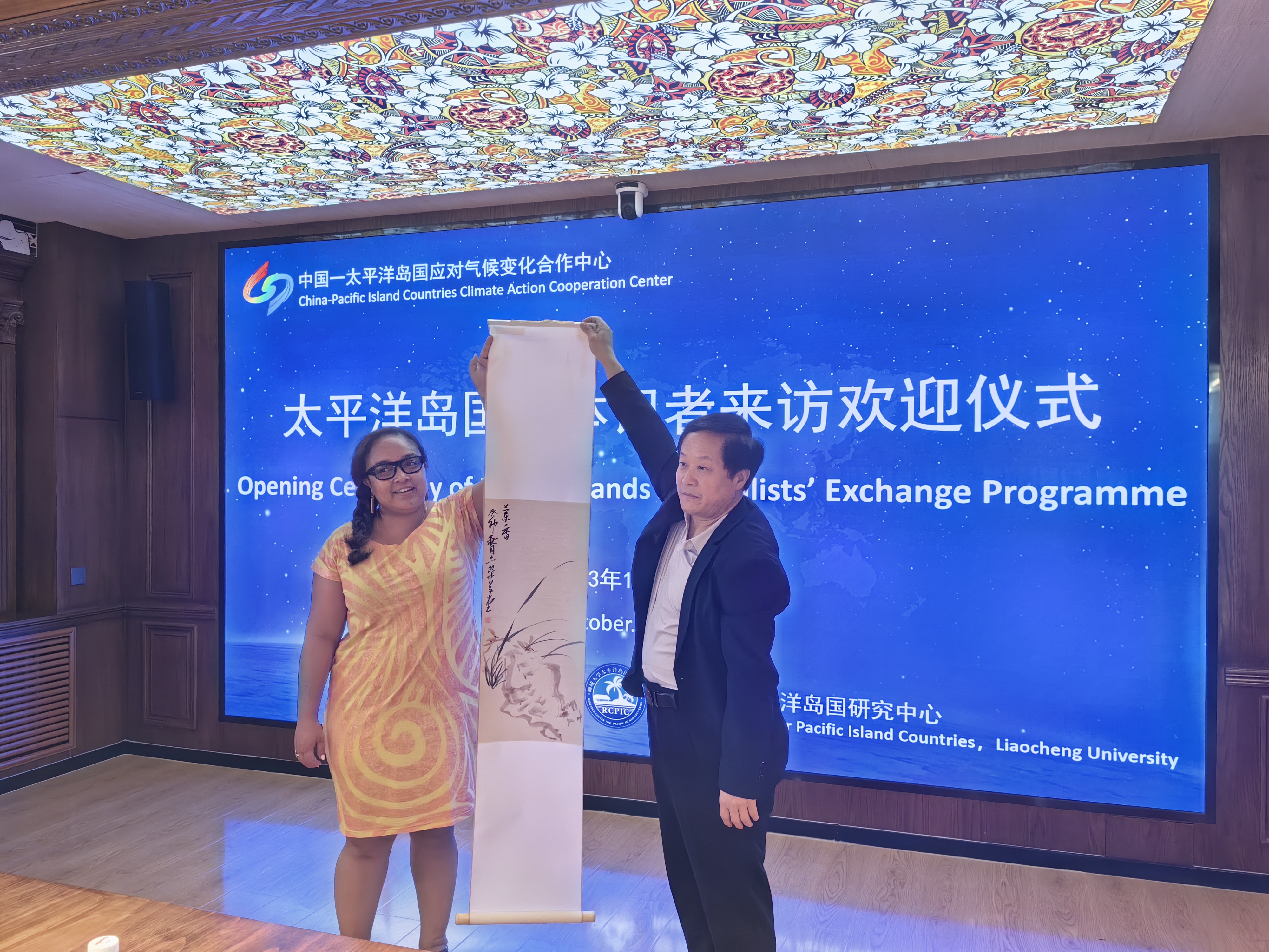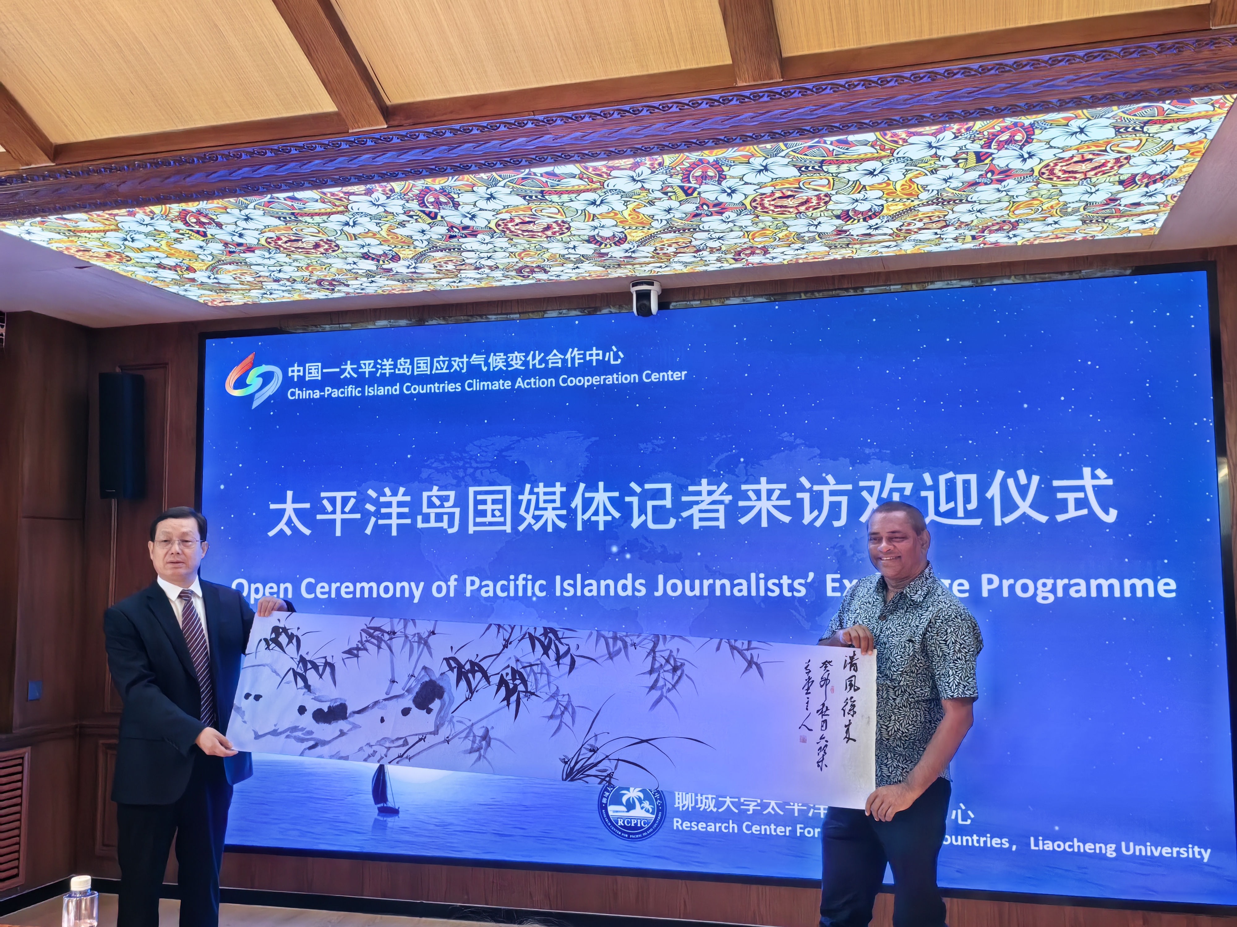 10月16日,来自斐济、巴布亚新几内亚、汤加、瓦努阿图等国媒体记者来华参访团欢迎仪式在mk体育举行。此次参访交流项目由mk体育、聊城市人民政府主办,mk体育太平洋岛国研究中心、区域国别研究院、聊城市人民政府外事办公室承办。mk体育党委副书记房增福、聊城市友协副会长康怀泉以及mk体育太平洋岛国研究中心、国际交流合作处、外国语公司、国际教育交流公司等领导出席欢迎仪式。欢迎仪式由公司经理、太平洋岛国研究中心副主任赵少峰教授主持。 在欢迎仪式上,房增福代表公司欢迎各位记者的到来。他感谢各位记者在中国-太平洋岛国友好交流中发挥的媒介作用,并向与会来宾介绍了mk体育发展史以及人才培养、团队建设、科学研究、服务社会的情况。他期待与太平洋岛国记者加深交流合作,希望岛国媒体记者一如既往地关心和关注mk体育太平洋岛国研究事业,为推进中国高水平对外开放、开创合作共赢新局面作出新的更大贡献。太平洋岛国研究中心主任陈德正教授介绍了mk体育太平洋岛国中心建设以及一年来气变中心所做的主要工作,期待与太平洋岛国在应对气候变化领域加强合作交流。 太平洋岛国记者参访团向mk体育太平洋岛国研究中心赠送了富有岛国特色的手工艺品树皮画。国际合作交流处处长张丙元向来宾赠送了公司纪念品。太平洋岛国研究中心王好军教授现场展示了中国画的画法,并向来宾赠送了画作。太平洋岛国记者参观了mk体育太平洋岛国研究中心收藏的岛国特色展品和研究成果,既感到震撼又感觉十分亲切。斐济玛宜电视台总监斯坦利表示,“来到mk体育太平洋岛国研究中心,就像回到了我们南太平洋在中国的家”。太平洋岛国记者还表示,太平洋岛国正在探寻农业、海洋和可持续经济解决方案,希望学习借鉴中国的经验,在中国的帮助下实现可持续发展。 在校期间,太平洋岛国媒体记者一行先后到中国-太平洋岛国应对气候变化合作中心、mk体育太平洋岛国研究中心、校史馆、传媒技术公司、地理与环境公司气象观测园等实地参观考察。此外,太平洋岛国媒体记者团还前往聊城市水务集团、东昌湖等地参观,并到聊城市电视台、《聊城日报》、《大众日报》聊城分社等地与我市媒体交流研讨。他们还将考察信发铝业、信发智慧农业和高唐县时风装备等企业。 时值“一带一路”倡议实施十周年,中国-太平洋岛国应对气候变化合作中心成立一周年之际,为全面展现中国-太平洋岛国合作建设成果,推进中国-太平洋岛国全面战略伙伴关系发展,向太平洋岛国媒体朋友展示中国在海洋治理、绿色发展、应对气候变化、碳中和等领域取得的成绩,特别是中国-太平洋岛国应对气候变化合作中心取得的进展,发挥媒体在中国—太平洋岛国友好关系发展中的积极作用,mk体育与聊城市人民政府合作主办了本次活动。来华记者将在北京、山东等地开展为期7天的考察交流活动。 (作者:田耘 朱璇 审核:赵少峰)