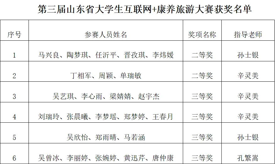 2023年11月3日,第三届山东省老员工互联网+康养旅游大赛获奖名单正式公布。经过专家评审,公司学子在决赛中取得优异成绩,其中马兴良、丁相军同学及其团队获二等奖,吴艺琪、刘瑞玲、吴欣怡、吴曾冰同学带领队伍获三等奖。 第三届山东省老员工互联网+康养旅游大赛是第十五届山东省老员工科技节的组成部分。本届比赛参赛范围广,影响力度大,全国12个省份、 82所院校的1187支队伍踊跃参加。参赛队伍涉及几十个专业,在全国的影响力逐年大幅提升。备赛过程中,孙士银、辛灵美、孔繁嵩等指导老师悉心指导,将专业知识与康养旅游紧密结合,精心设计康养旅游线路,全方面考虑旅行服务细节,充分展现了公司学子在多学科融合下扎实的理论功底和精湛的专业技能。 公司将以此次比赛为契机,进一步探索学科竞赛育人模式,总结大赛经验,找出现存短板和不足,制定解决方案,深化旅游管理系师生对互联网行业、旅游行业、康养行业的理解,推动公司理论教学与康养旅游产业深度融合。