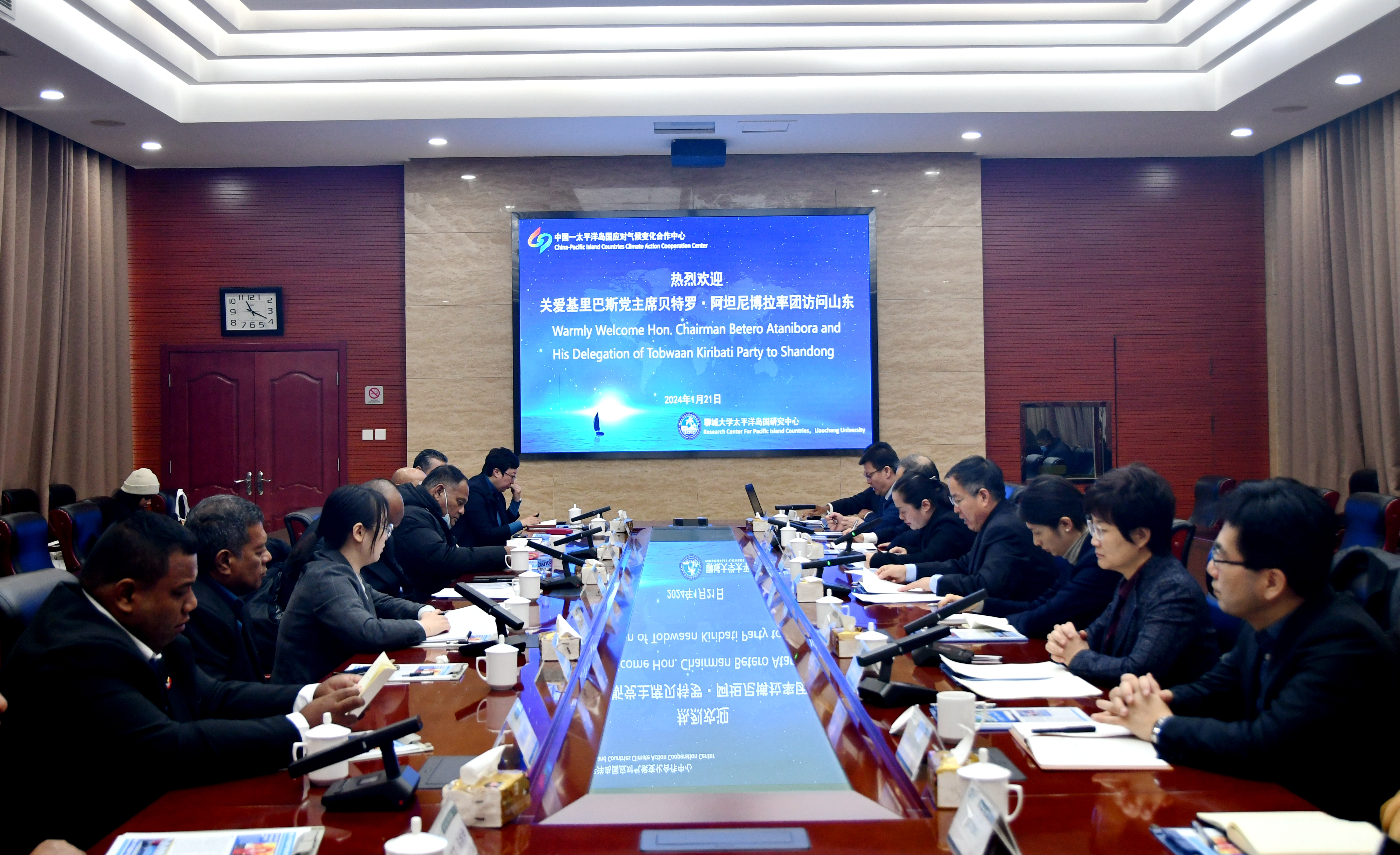 1月21日,关爱基里巴斯党主席贝特洛·阿坦尼博拉一行来公司考察访问。公司党委副书记胡海泉陪同考察并与客人热情座谈。中联部处长李潇潇、省委外办美大处处长张鹏、市外办主任陈海蓉,公司国际合作与交流处、太平洋岛国研究中心、中国-太平洋岛国应对气候变化合作中心负责人参加活动。 基里巴斯客人参观了公司太平洋岛国研究中心,观看了中国-太平洋岛国应对气候变化合作中心宣传片与第二届中国—太平洋岛国应对气候变化培训班纪实视频。太平洋岛国研究中心主任、中国-太平洋岛国应对气候变化合作中心常务副主任陈德正教授介绍了中心的总体情况、机构职能及近期工作开展情况。 胡海泉对客人表示热烈欢迎,并介绍了公司推进国际化办学、打造国际化智库的有关情况。他表示,贝特洛·阿坦尼博拉主席阁下一行来访,又一次开启双方的合作之旅、建设之旅,相信通过双方真诚努力,中太应对气候变化和人文领域的交流合作会结出更加丰硕的果实,未来的合作会像太平洋的海水一样澄澈而壮阔,像太平洋的蓝天一样深邃而高远。 贝特洛·阿坦尼博拉代表基里巴斯人民向中国政府及相关机构对基里巴斯及太平洋岛国应对气候变化事业提供的支持与帮助表示感谢,同时希望双方进一步加强在经贸、人文、科技与应对气候变化等方面的合作,更好地造福两地人民。 (审核 陈德正)