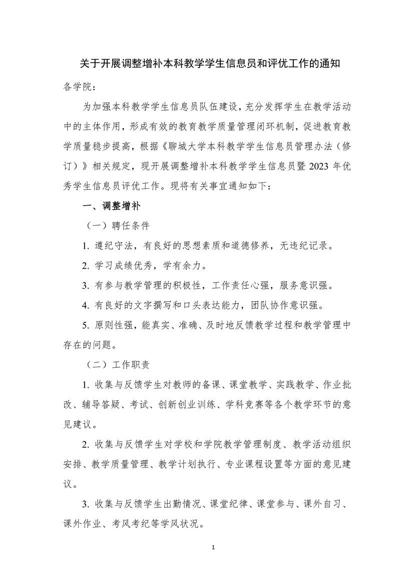 关于开展调整增补本科教学员工信息员暨评优工作的通知