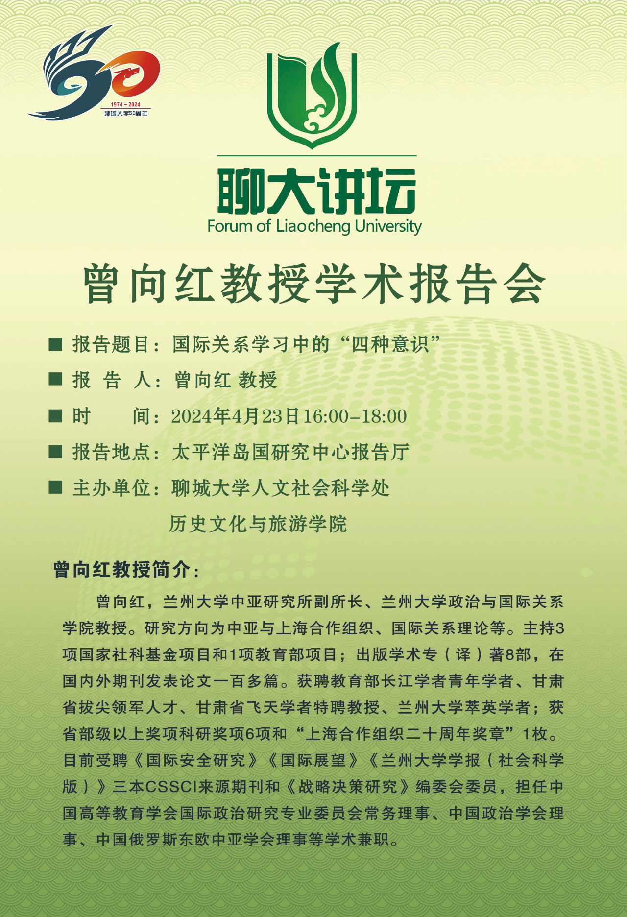 讲座预告丨曾向红教授应邀做客聊大讲坛