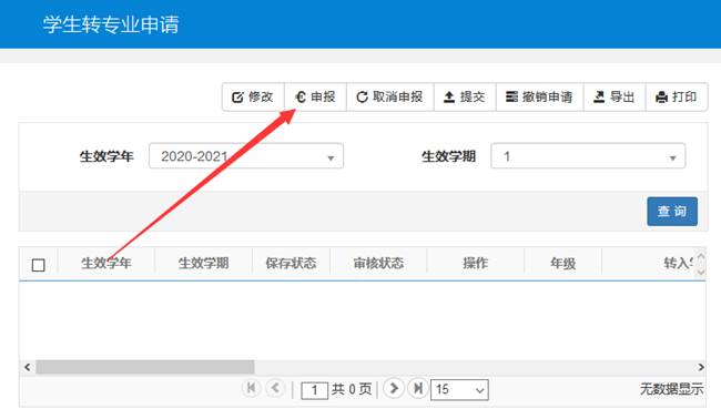 7.在员工转专业申请界面,点击查询,选中填报好的转入专业,点击提交按钮