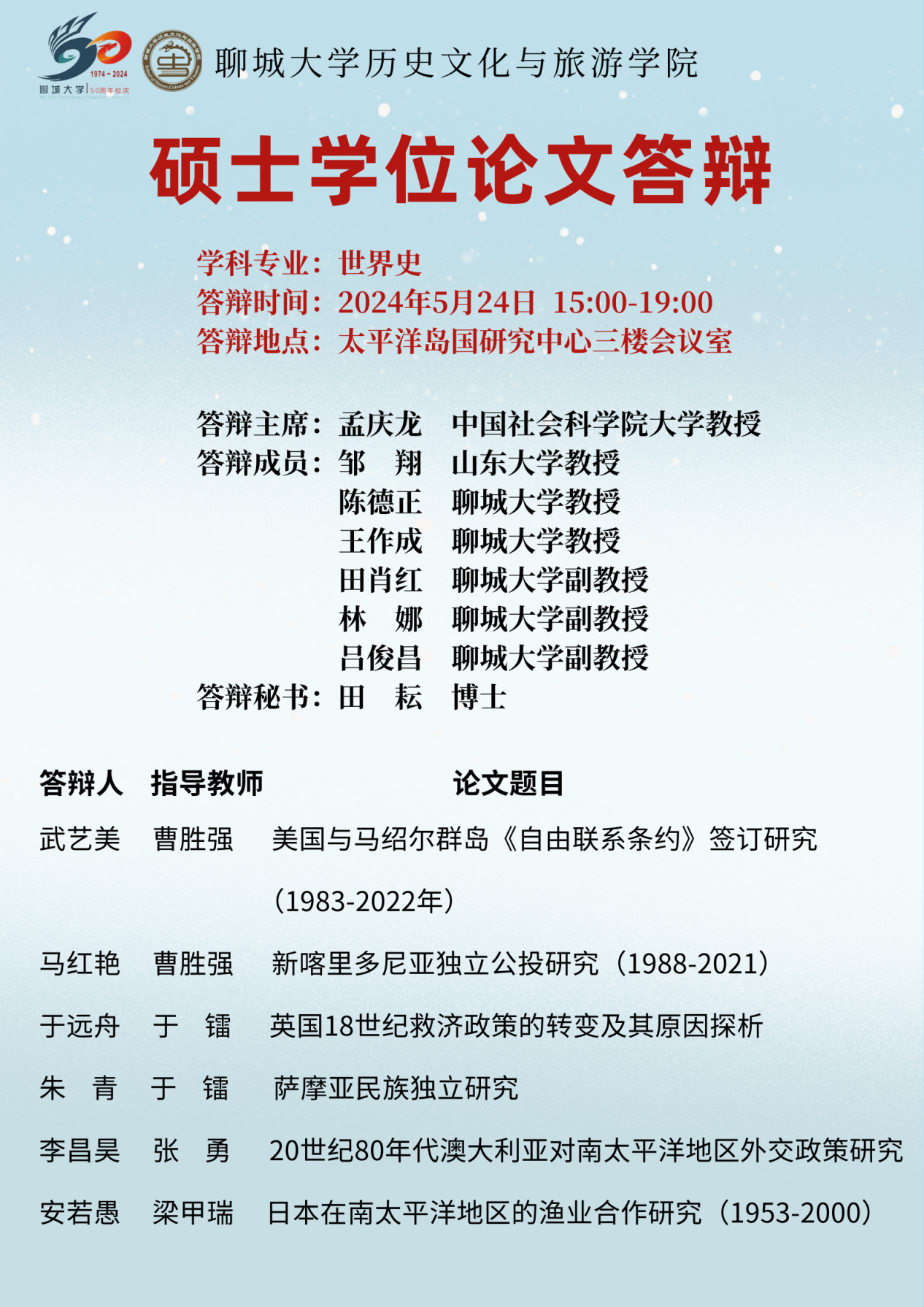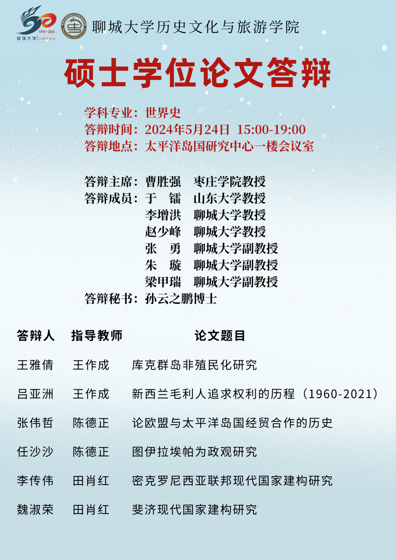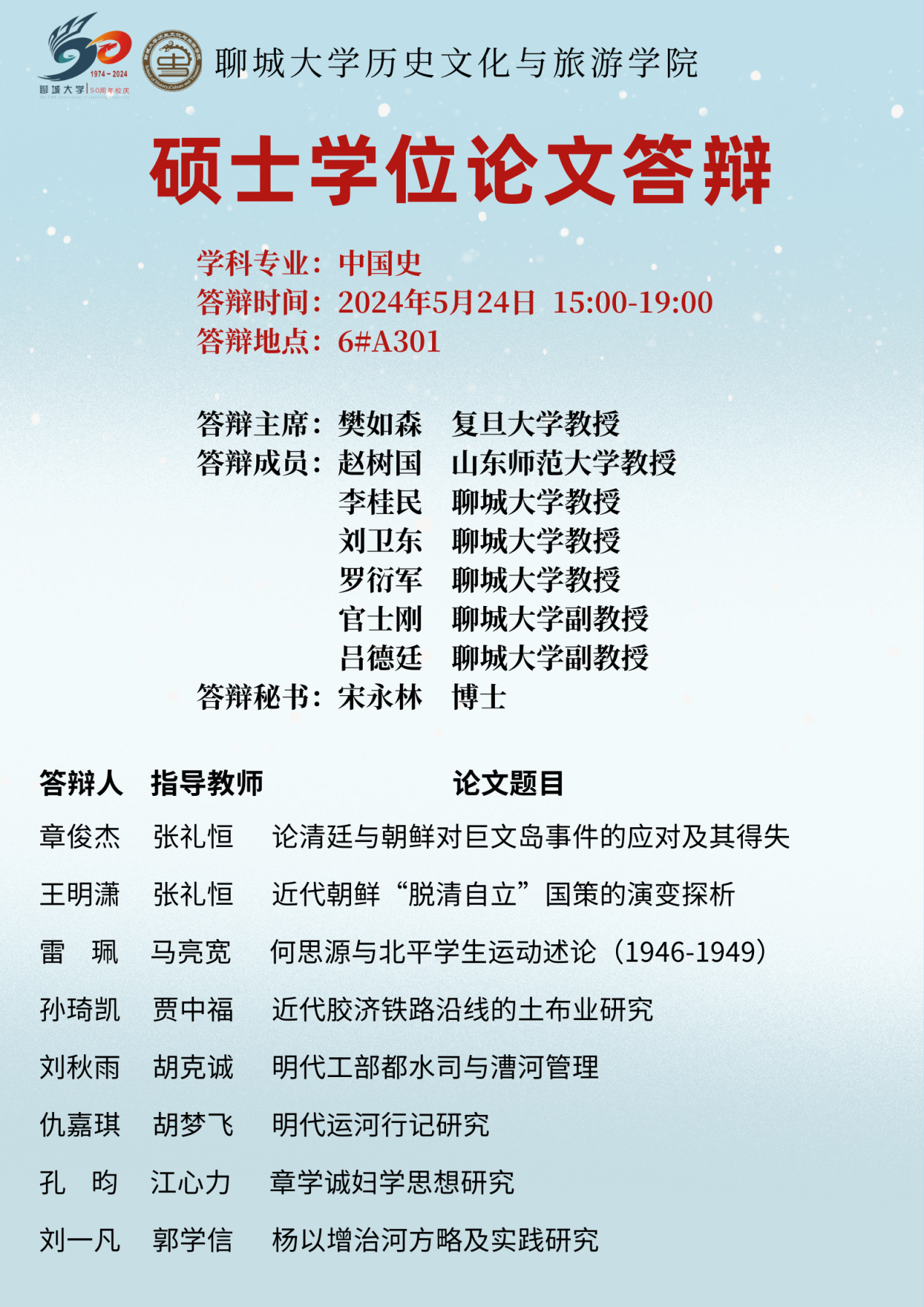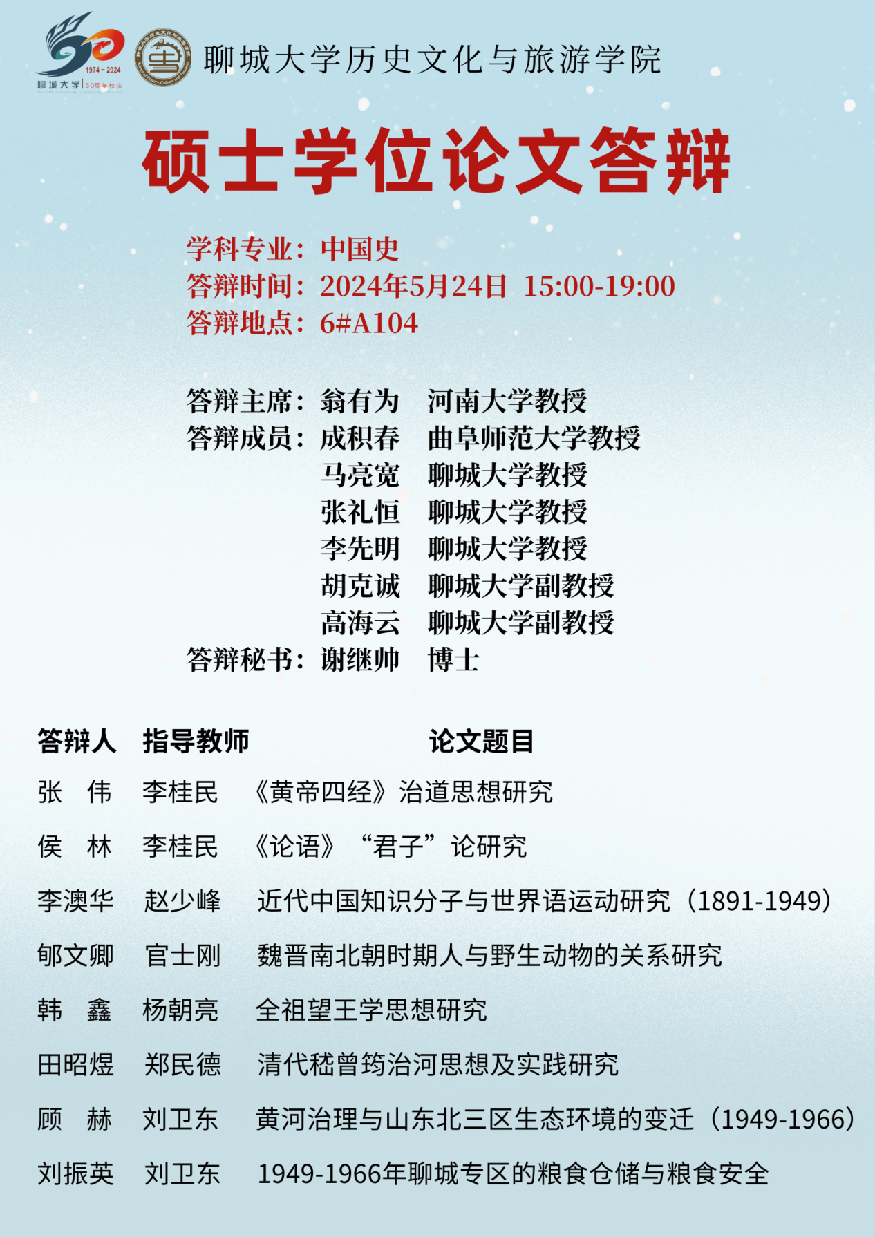 5月24日下午,mk体育举行了2024届硕士研究生学位论文答辩会。本次答辩会邀请到中国社会科公司大学、复旦大学、山东大学、河南大学等知名高校专家学者莅临指导,22级、23级部分硕士研究生参会旁听。 答辩会上,同学们分别从选题意义、论文框架、创新之处等方面对毕业论文进行陈述;各答辩委员认真负责,以高标准、高质量、高水平、高要求为宗旨,分四个场次对28位同学的毕业论文进行了认真的评审和建议,充分展示了答辩委员会严谨的治学态度和同学们良好的史学素养。 本次答辩会程序规范、秩序井然,公司28名硕士研究生均顺利通过学位论文答辩,答辩会圆满完成。