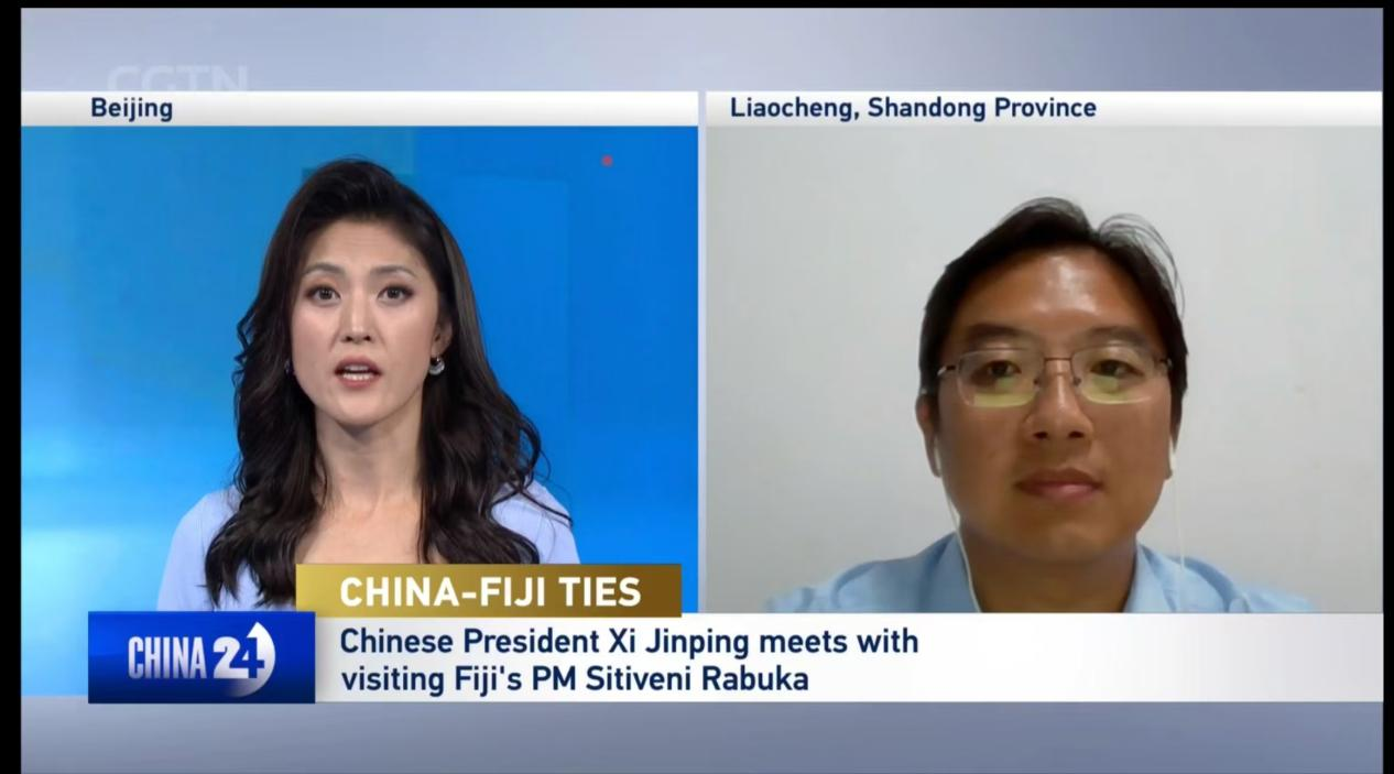 8月20日下午,国家主席习近平在北京人民大会堂会见来华正式访问的斐济总理兰布卡。当晚,公司太平洋岛国研究中心研究员倪鹏就中斐友好合作、海洋命运共同体、太平洋岛国应对气候变化研究等问题接受中国国际电视台(CGTN)晚间节目CHINA24的直播专访。 倪鹏谈到通过了解此次兰布卡访华行程,可以看出其访问重点,所到访的云南、浙江、福建等省份在扶贫及乡村振兴、新能源开发、垃圾发电、海水淡化、跨境电商等方面的成就,是斐济人民真正需要的,也是我们未来可以与岛国进行务实合作的领域。根据刚刚结束太平洋岛国暑假期间的田野调研成果,倪鹏指出斐济等太平洋岛国在应对气候变化方面迫切期待同中国加强合作,团组也深切感受到太平洋岛国人民对发展的渴望,以及中国与太平洋岛国特别是普通民众之间的深厚情谊。他认为下一步要推动中国与太平洋岛国应对气候变化合作研究不断深入,需要更深入了解太平洋岛国的国情民意和历史文化,并多维度把握当前国际学界相关研究的发展趋势。 中国与太平洋岛国合作的未来拥有巨大潜力和广阔前景。作为国内较早专注于太平洋岛国研究的科研机构,公司将继续以海洋为纽带助力构建中国同斐济等太平洋岛国海洋命运共同体,做好学科顶层设计、人才培养、社会服务等方面的工作,为提升太平洋岛国应对气候变化与海洋环境治理能力贡献力量。