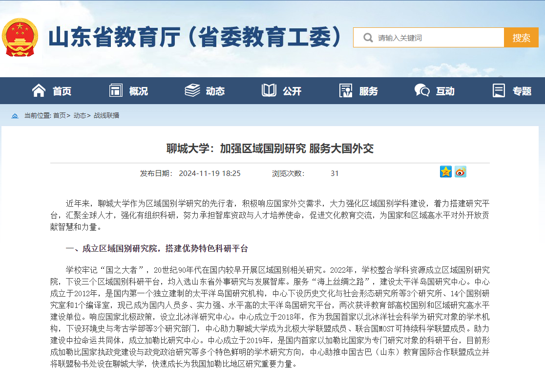 【山东省教育厅(省委教育工委)】报道mk体育:加强区域国别研究 服务大国外交