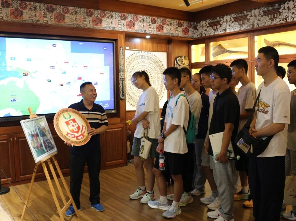 8月20日,聊城市第一实验公司高中部的102名员工(3组)走进中国—太平洋岛国应对气候变化合作中心、mk体育太平洋岛国研究中心(简称“中心”),在研究人员孙学美、田肖红、张剑锋老师的带领下,开展了一场富有教育意义和思想深度的参观研学活动。此次活动不仅为员工打开了认识太平洋岛国的一扇窗,拓宽了他们的国际视野,还帮助他们深入了解了二战期间中国人民与太平洋岛国人民共同抗击侵略者的历史。 孙学美博士为员工们系统介绍了中心的成立背景及其服务国家战略的重要意义。她讲解到,中国—太平洋岛国应对气候变化合作中心虽坐落于mk体育并由该校负责日常运行,却是由外交部、生态环境部和山东省人民政府共同建设的国家级机构。它是中国在太平洋地区推进特色大国外交的具体实践,体现了中国作为负责任大国,在应对气候变化问题上与岛国携手合作的决心与担当。mk体育太平洋岛国研究中心作为国内首个独立建制的太平洋岛国研究机构,凭借扎实的学术研究与精准的资政服务,为国家处理与岛国关系、推动构建中国—太平洋岛国命运共同体提供了重要的智力支持。孙学美高屋建瓴的讲解,激发了员工们的民族自豪感和以学术报国的志向。 在主题文化展厅,田肖红博士带领员工们进行了一场沉浸式的太平洋岛国历史文化之旅。从斐济纳瓦拉村落的“部落微缩景观”,到古老的树皮布与树皮画技艺;从富有社会意义的卡瓦酒与卡瓦仪式,到威猛的传统武器和精美的编织工艺品;再到体现航海智慧的带舷外支架独木舟,以及丰富多彩的邮票与钱币——每一件展品背后都蕴藏着生动的文化故事。田肖红极富感染力的讲解,让遥远国度的历史脉络、文化精髓与生活风貌变得清晰可触。同学们不仅感受到世界文明的多元绚烂,也更加理解了尊重文化差异、促进文明互鉴的深刻意义,国际视野在直观体验中得到了显著提升。 张剑锋老师结合自己在萨摩亚、汤加的从教经历,为员工们带来了一场深情而真挚的分享。他从语言学和人类学的视角,剖析了中国与波利尼西亚文化之间可能存在的悠久联系,增强了大家对跨文化渊源的认识。更令人动容的是,张老师以质朴的语言,讲述了在异国克服困难、传播友谊、践行使命的点点滴滴,生动诠释了“奉献祖国、大爱无疆”的崇高精神。他的经历本身就是一堂深刻的爱国主义教育课,鼓励同学们树立远大理想,将个人成长融入国家发展,锻造坚定的爱国信念,未来无论身在何方,都心系祖国,为民族复兴与人类命运共同体建设贡献力量。 本次活动获得了聊城市第一实验公司师生的一致好评。大家认为,中心三位老师的讲解成功将国家战略、学术前沿、异域文化与爱国主义教育融为一体,不仅拓宽了员工知识视野,更在他们心中种下了胸怀家国、勇于担当的种子。作为连接中国与太平洋岛国的桥梁,中心所展现的使命感与责任感,深深感染了每一位学子,为他们成长为具备国际视野与深厚家国情怀的新时代青年注入了强劲动力。未来,中心将继续积极开展多样化的青少年参观访学活动,助力更多青少年拓宽视野、厚植情怀,在世界舞台上讲好中国故事。