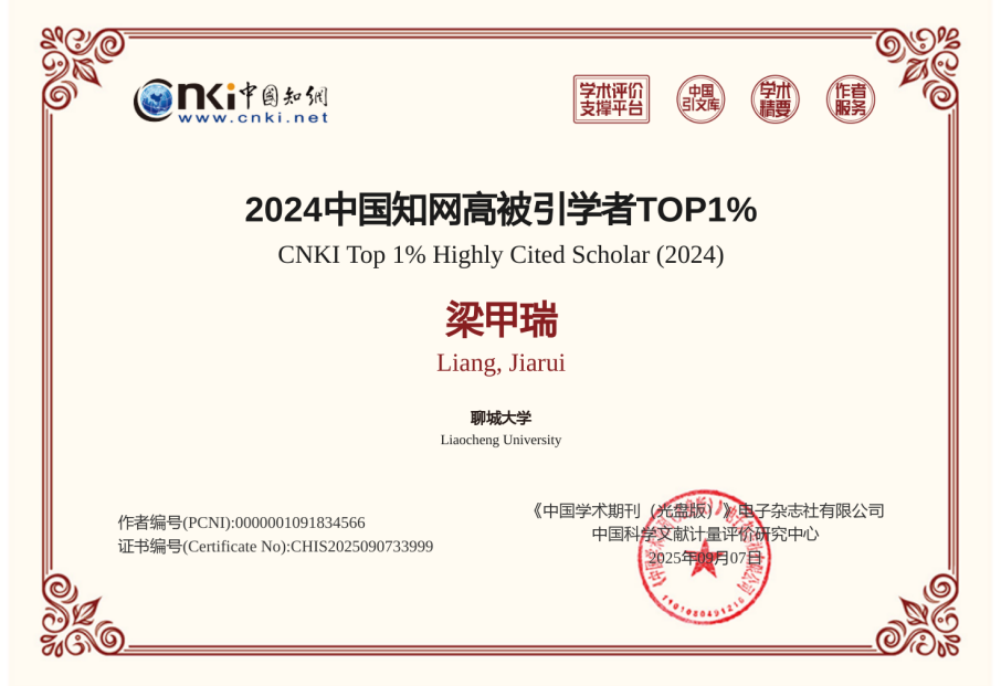 公司教师入选“2024中国知网高被引学者TOP1%”名单