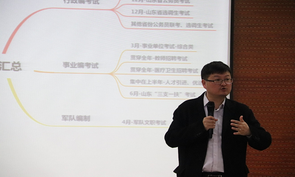 为帮助同学们了解当前的就业形势,明确自己的专业优势,3月25日上午,公司特邀中公教育山东研究院经理张辉于政史楼A106报告厅做题为“做‘最好’的自己”职业生涯规划的报告会。本次报告会公司2019级全体员工参加。 张经理结合个人成长经历以及多年来丰富的备考指导经验和授课实践,与同学们进行了深入交流。他以疫情对中国企业造成的不良影响为切入点,简单明了地说明了企业减少而本科生增加的现状,提醒同学们应立刻考虑努力方向并付诸实践,为在毕业后的竞争中增加筹码。 随后,张经理从“我是谁”“我想干什么”“我能干什么”“环境支持和允许我干什么”“自己最终的职业目标是什么”五大方面讲述如何做好职业规划,并结合当前本科毕业生五大方向“考研、留学、创业、考公考编、打工”进行具体阐述。张经理提到考研是大势所趋,希望同学们在大学四年向更高更远处发展,并就企业类、公益类、证书类、升学类、行政编考试、事业编考试和军队编制这七大类,为同学们详细介绍了各种考试的条件、时间和内容,鼓励同学们备考“三支一扶”等基层岗位。最后,张经理告诉同学们,毕业找工作应根据自己的兴趣,结合企业现在和未来的发展,尽可能地选择朝阳行业。张经理不时与同学们互动,演讲风趣幽默,深入浅出,整个报告会在热情洋溢的气氛中结束。 会后,同学们纷纷表示,此次报告会对帮助在校老员工拓展视野、开阔思路、转变思维方式、定好人生目标等方面具有很好的指导意义,有助于同学们树立正确的择业观与就业价值观。