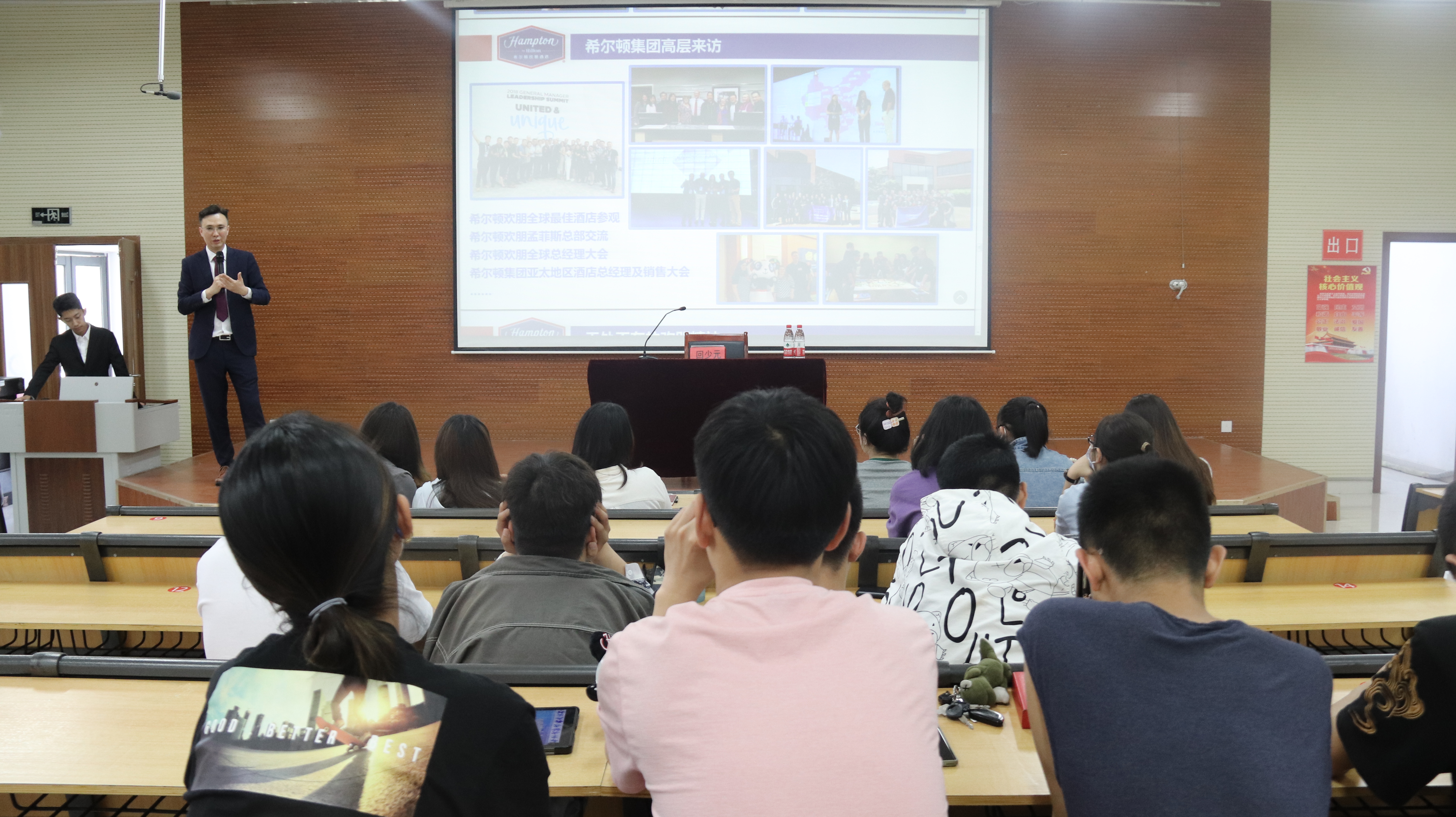 5月19日,公司特邀聊城希尔顿酒店总经理、希尔顿欢朋品牌山东区域总经理回少元于六号楼A#106报告厅举办希尔顿欢朋酒店宣讲活动,以便帮助旅游管理专业的同学更深入地进行旅游管理专业学习,为以后的实习与就业积累经验。 在主持人简短地介绍后,回少元经理为旅游管理专业的同学们带来一场精彩的宣讲。他从希尔顿品牌的创立开始讲起,带领同学们了解希尔顿品牌的百年悠久历史,共同走进这个全球最具价值的酒店品牌。回经理从”我们的里程碑”、“我们的产品”、“我们的价值”、“我们的文化”四部分,为同学们介绍追求卓越、热情友善、坚持不懈、正能量、热爱生活、乐于助人的欢朋精神,向同学们分享希尔顿欢朋的成功之道。在最后的提问环节,回经理细致地回答同学们提出的“女性在酒店一线岗位中是否会面临性别歧视”等问题,也大方地向同学们分享他对“跳槽”这一问题的独到见解。回经理的宣讲实例丰富多彩、生动有趣,现场气氛十分活跃。 本次宣讲会将品牌认知与经验分享相结合,使公司旅游管理专业的员工对希尔顿欢朋集团以及酒店管理有更深层次的了解,促使员工对未来发展进行更明确的规划,有力推动公司和酒店专业人才培养方案的顺利进行。(通讯员:赵春雨 王晓婉)