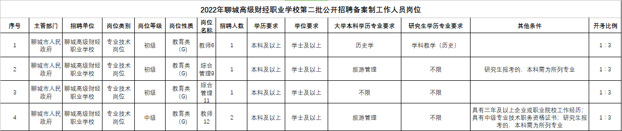 招聘岗位人数及具体要求,详见《2022年聊城高级财经职业公司第二批公开招聘备案制工作人员岗位汇总表》。以下是符合本公司学子报考的岗位信息,供大家参考。